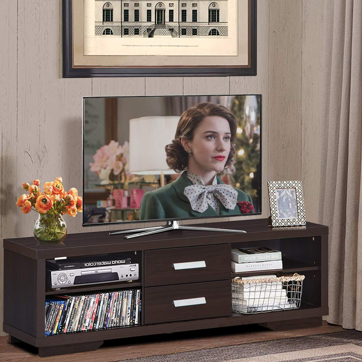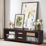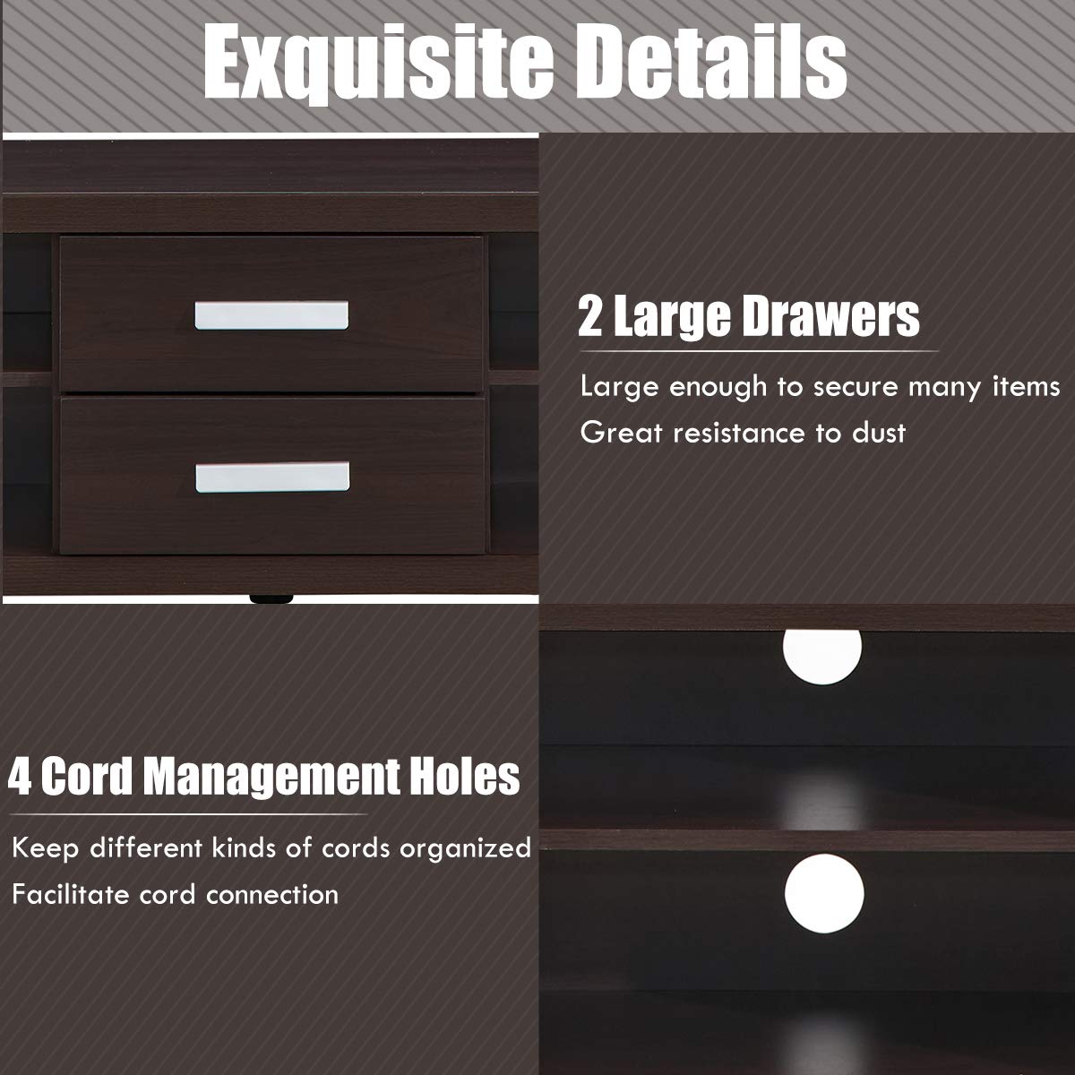 - Customize Your Storage Space: The TV stand is designed with 2 drawers so that you can store your important items like movie collection inside and prevent dust from entering. Besides, there are 2 open storage shelves to allow you to store media devices. More, you can customize the storage space based on your requirements since the shelves are 3-position adjustable.