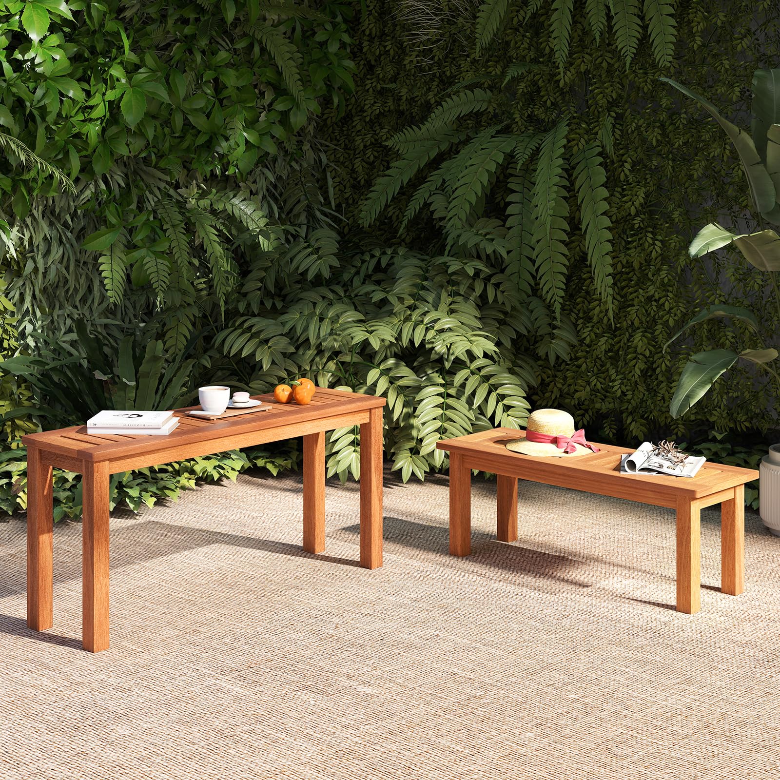 Includes 2 benches of different sizes, offer versatile seating design for any occasion