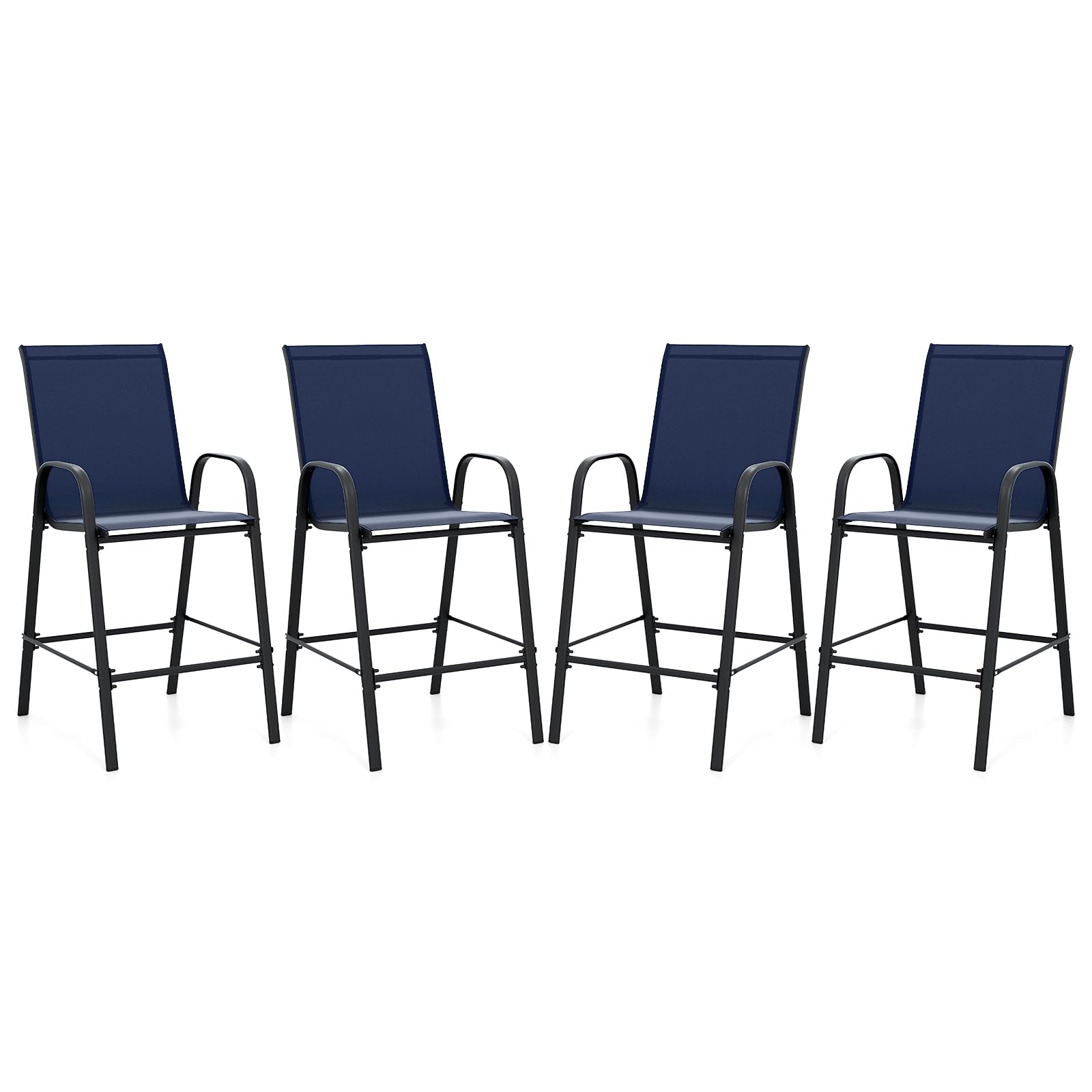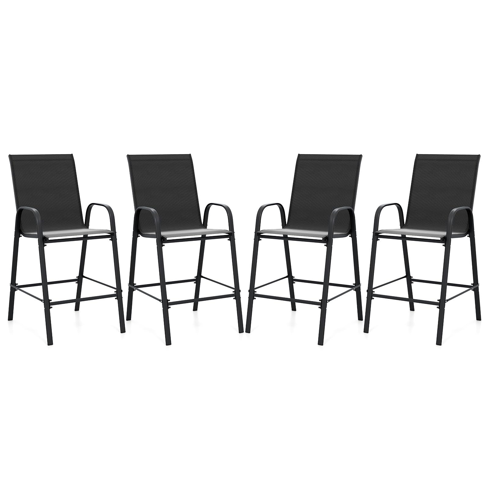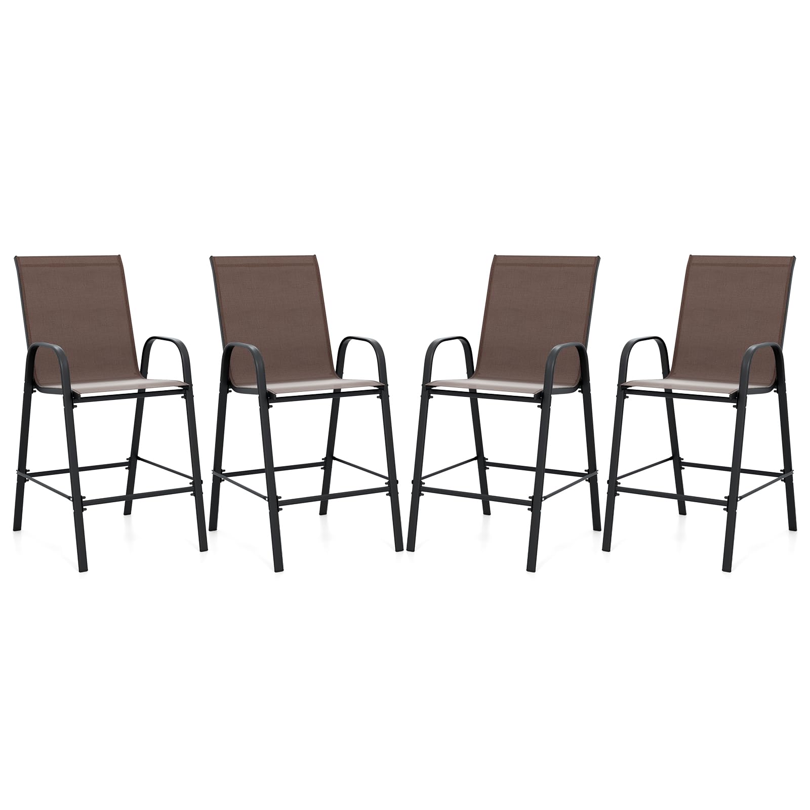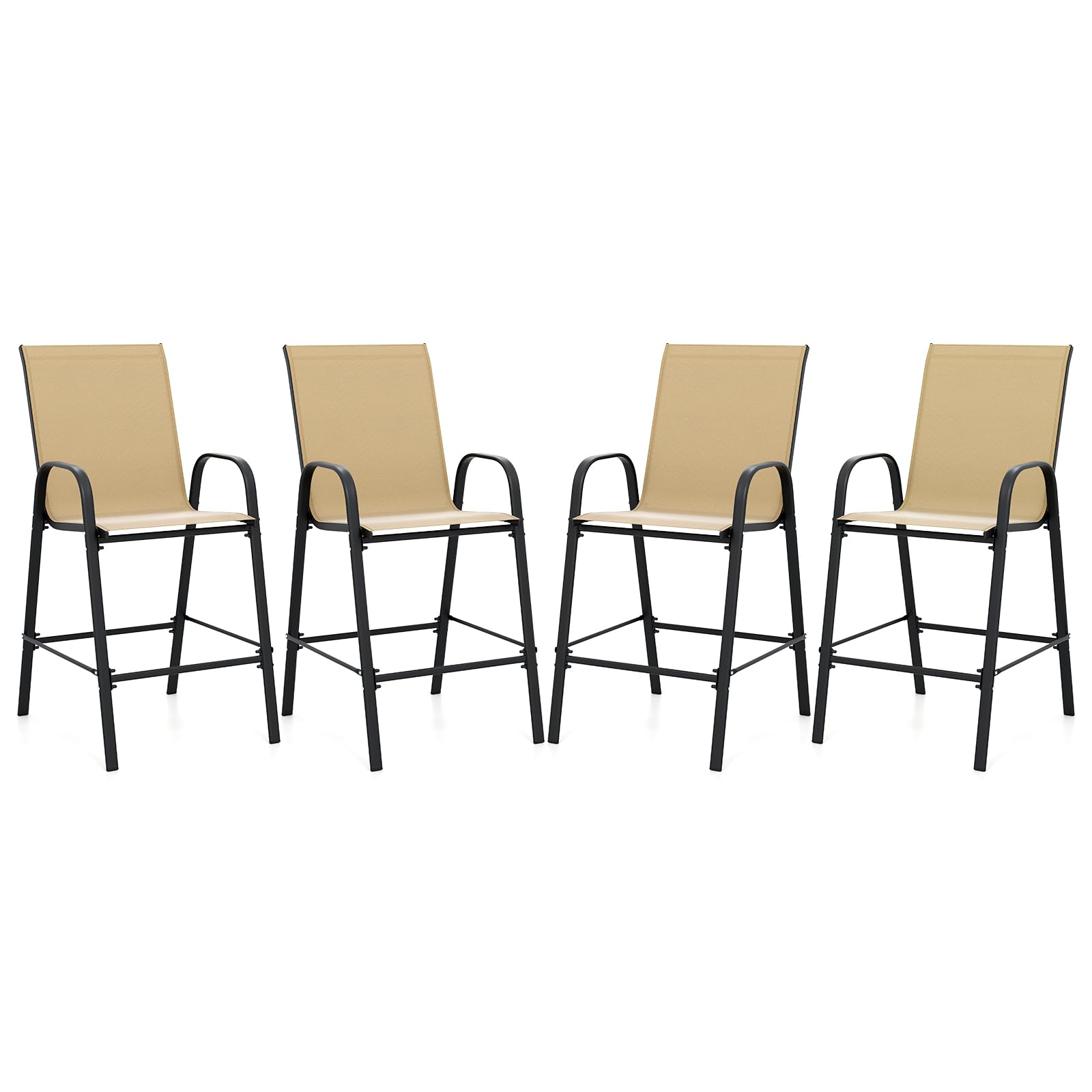 Enjoy a comfortable and relaxing outdoor time with the 29" bar stool set, featuring premium fabric that is breathable, tear-proof, and sun-protective. With ergonomic features like a high backrest, curved armrests, and a 11.5" high footrest, these outdoor barstools offer optimal support. The spacious seat, measuring 21" by 16", ensures ample room for relaxation. Constructed with a sturdy metal frame that supports up to 330 lbs, these bar chairs come with protective foot pads for added stability. Perfect for various outdoor settings, such as decks, poolside, and front porches, these stylish stools are designed to complement bar tables between 40" and 43" in height.