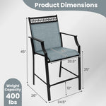 Made with a sturdy anti-deformation metal frame, these barstools provide unparalleled stability for long-term use. The selected rip-resistant fabric of the seats adds comfort, while ensuring a breathable and quick-drying surface. The curved seat and inclined backrest, along with a footrest, offer continuous comfort and support. With a 25” seat height, these stools are perfectly sized for standard kitchen islands, cafe counters, or balcony bars, making them ideal for various environments. Enhance any space with these versatile barstools, crafted for optimum comfort and style.