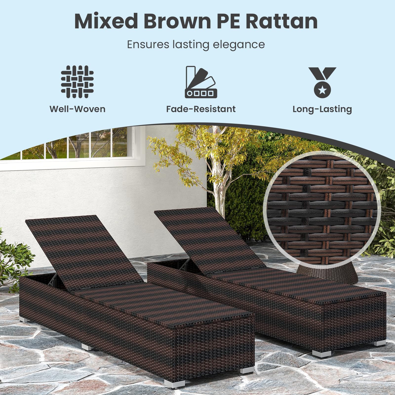 - Long-Lasting Woven Beauty: The chaise lounge boasts an intricately woven and fade-resistant mix brown PE rattan, offering a timeless aesthetic that maintains its elegant appearance season after season.