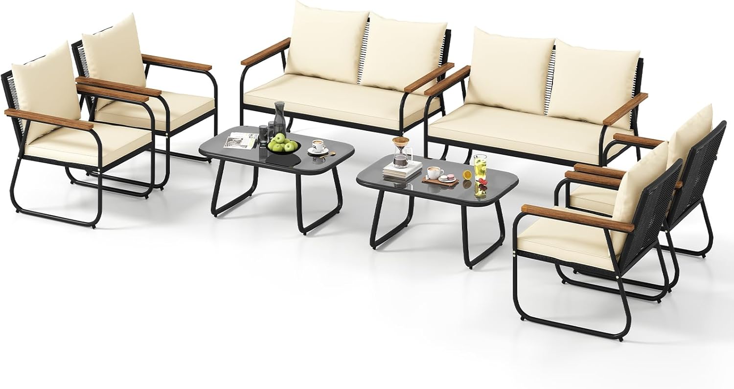 Material: PE Rattan, Metal, Acacia Wood, Polyester, Sponge