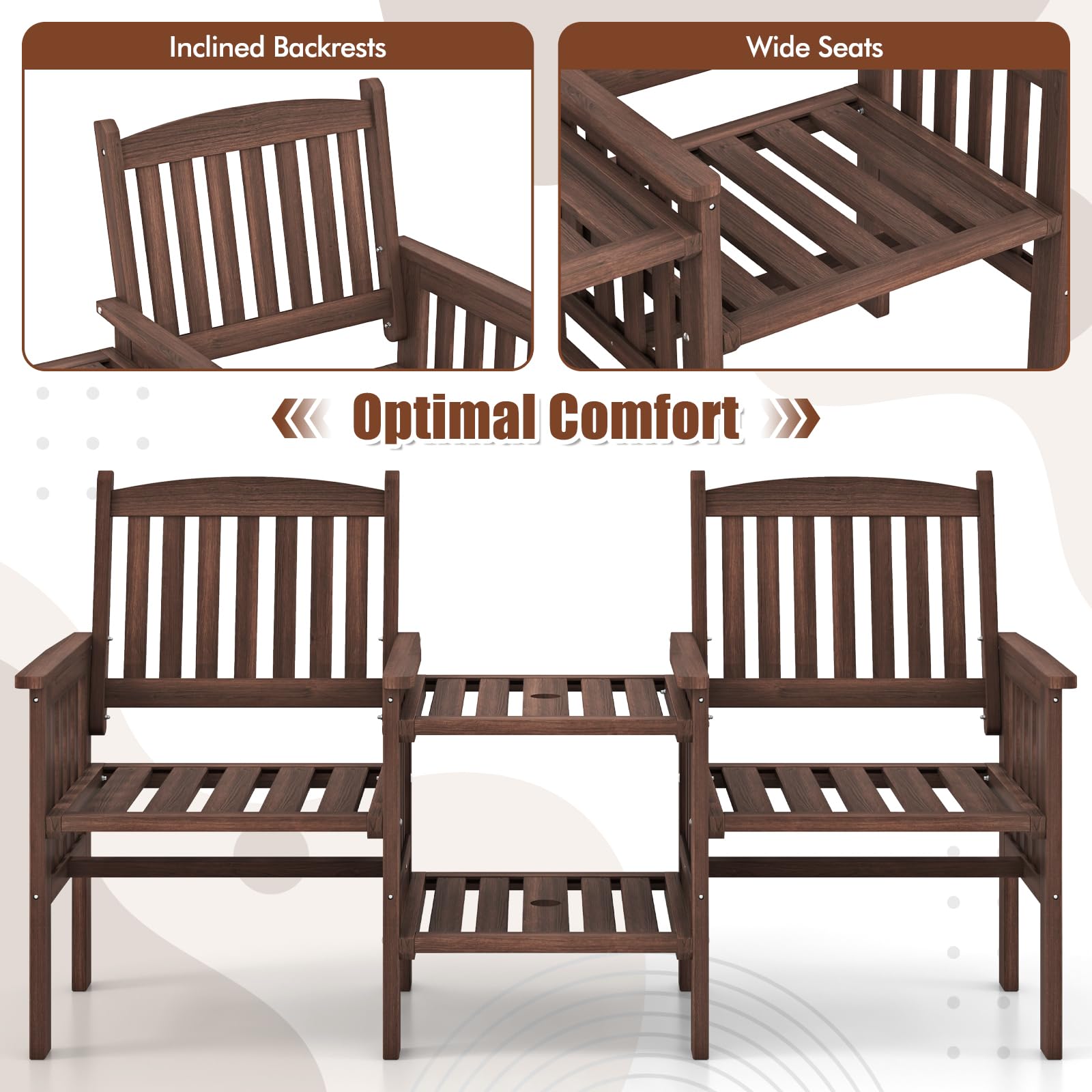 - Built-in Umbrella Hole: Ready to offer shade on sunny days, this wood loveseat with table includes a 1.96” perfectly sized umbrella hole that fits most standard patio umbrellas (not included). Note: the umbrella base is needed (not included).