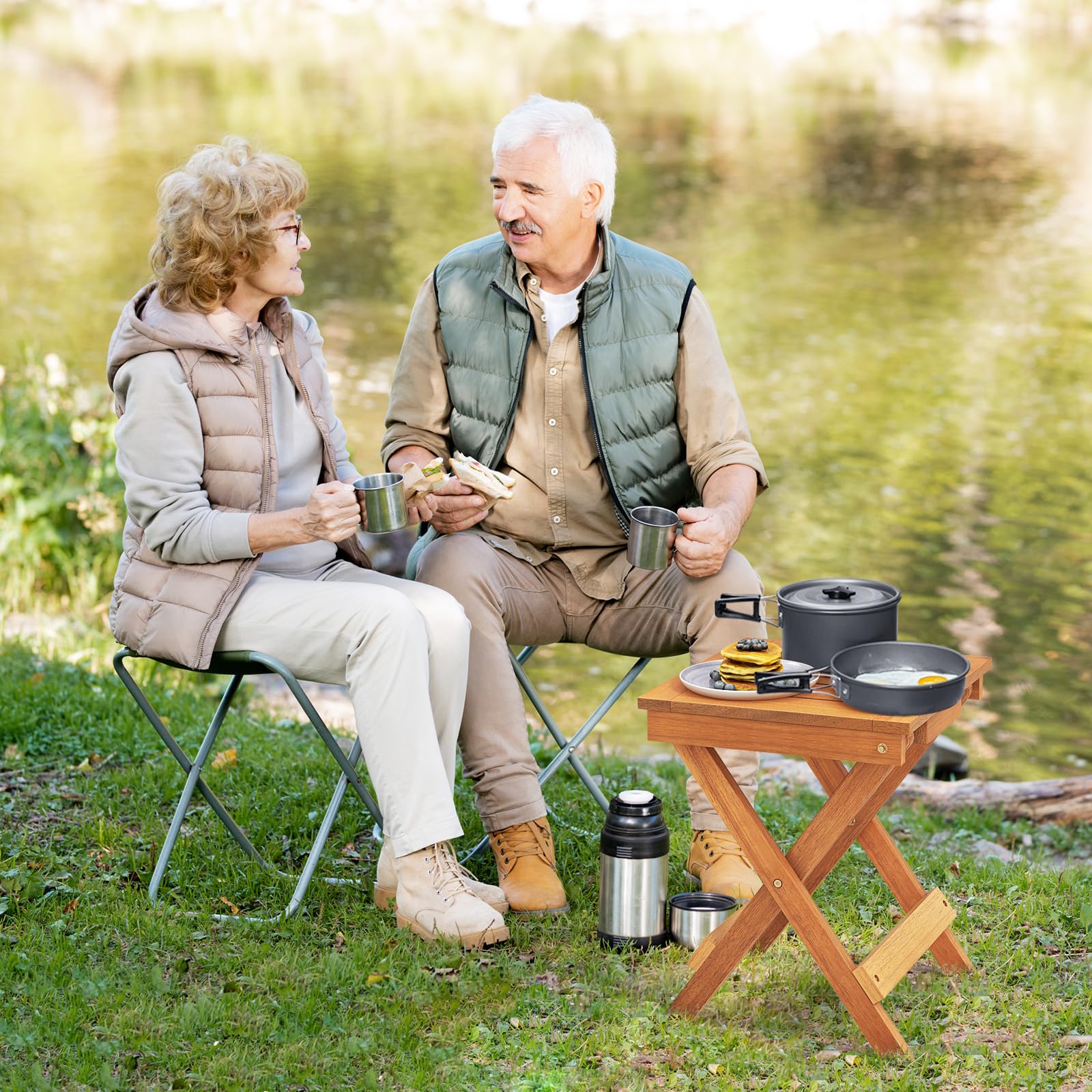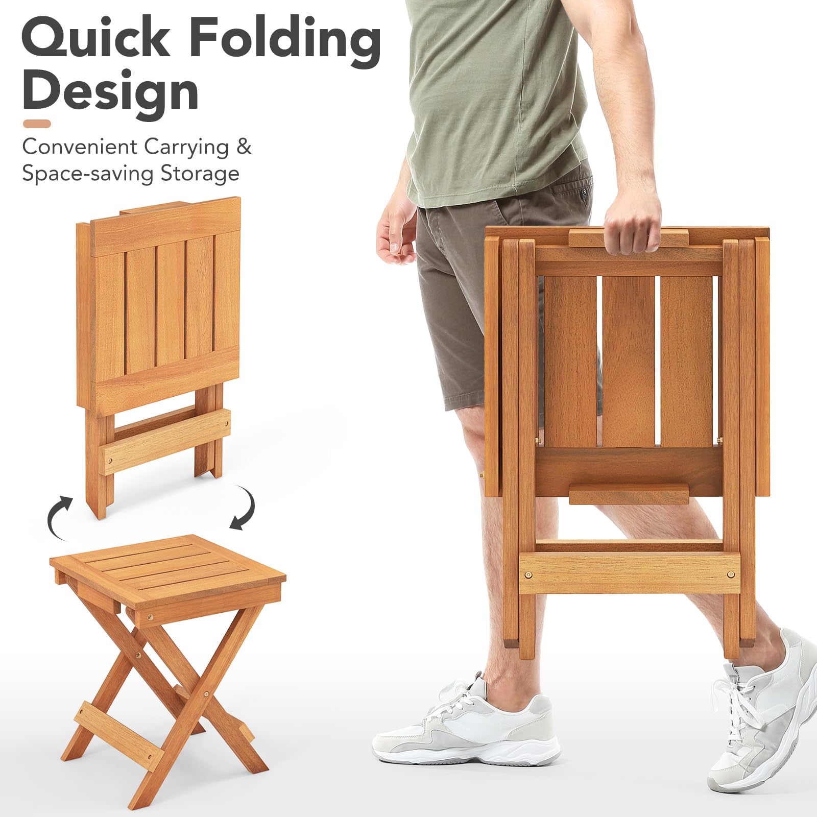 - Natural Hardwood Material: Crafted from high quality hardwood, this outdoor folding side table is a gift from nature with high hardness. What’s more, the burr-free surface exudes a charming allure with its natural finish.