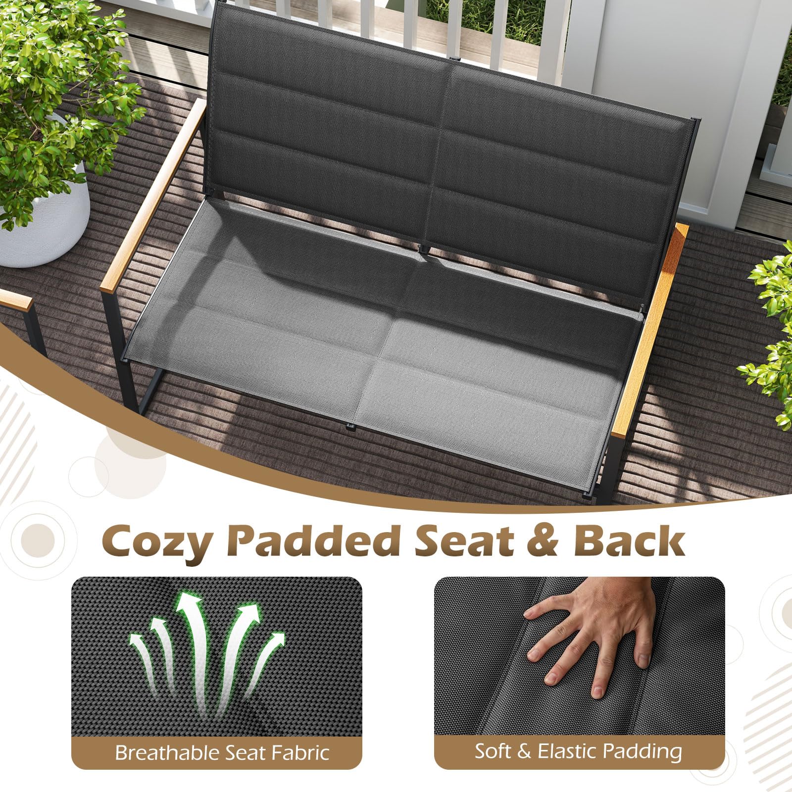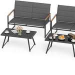 Tangkula Outdoor Metal Conversation Set with Padded Fabric Seat & Wood-Plastic Armrests