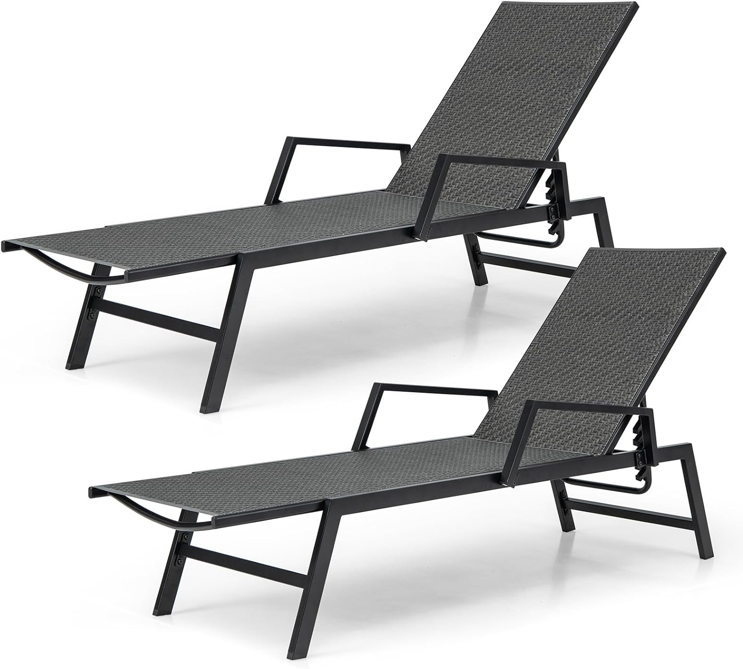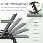 - 5-Position Backrest: Featuring 5 backrest positions with simple adjustment, this patio chaise lounge will satisfy your multiple outdoor requirements such as reading, sunbathing and sleeping. You can even lie flat for more comfort. Note: For your safety, the bracket must snap into the slot.