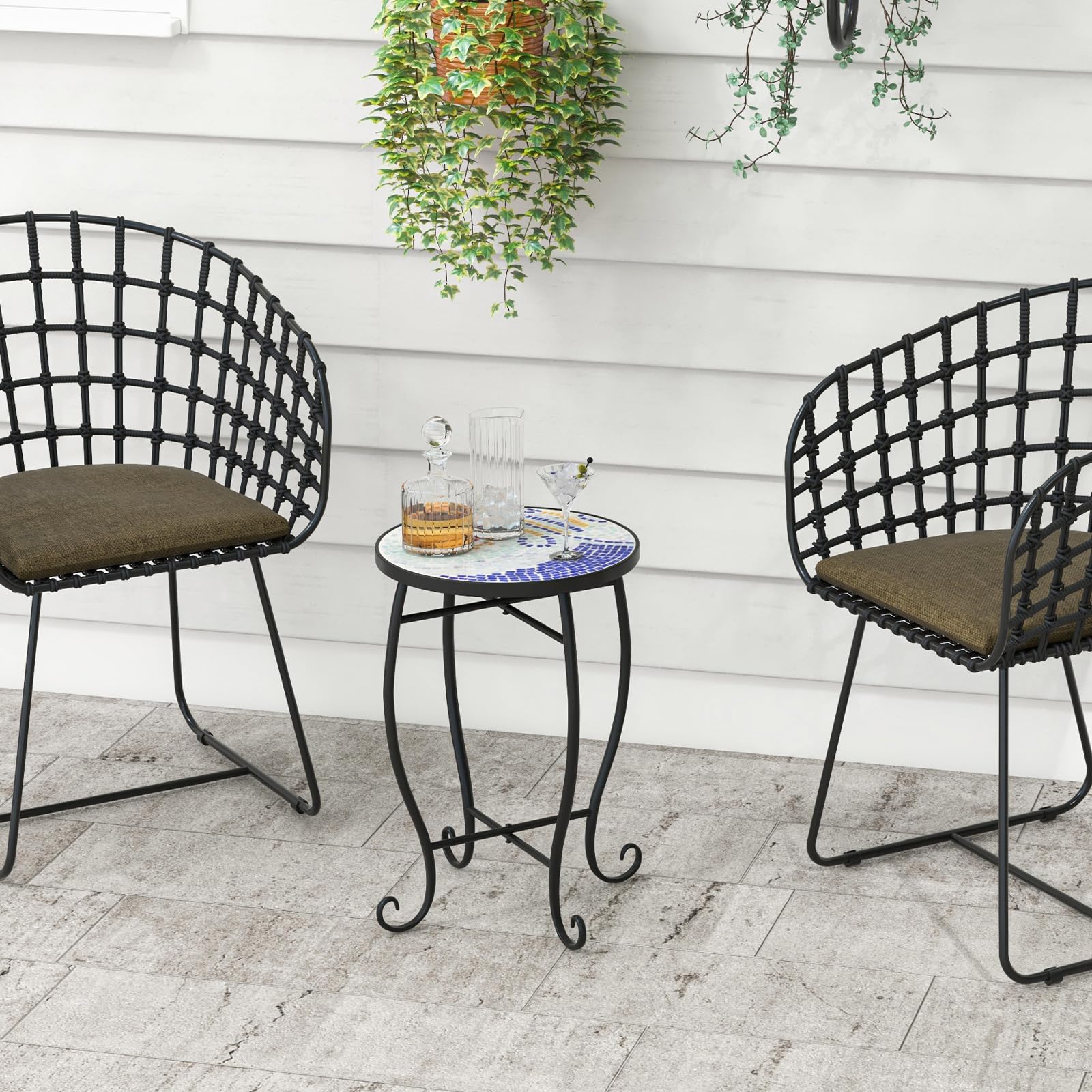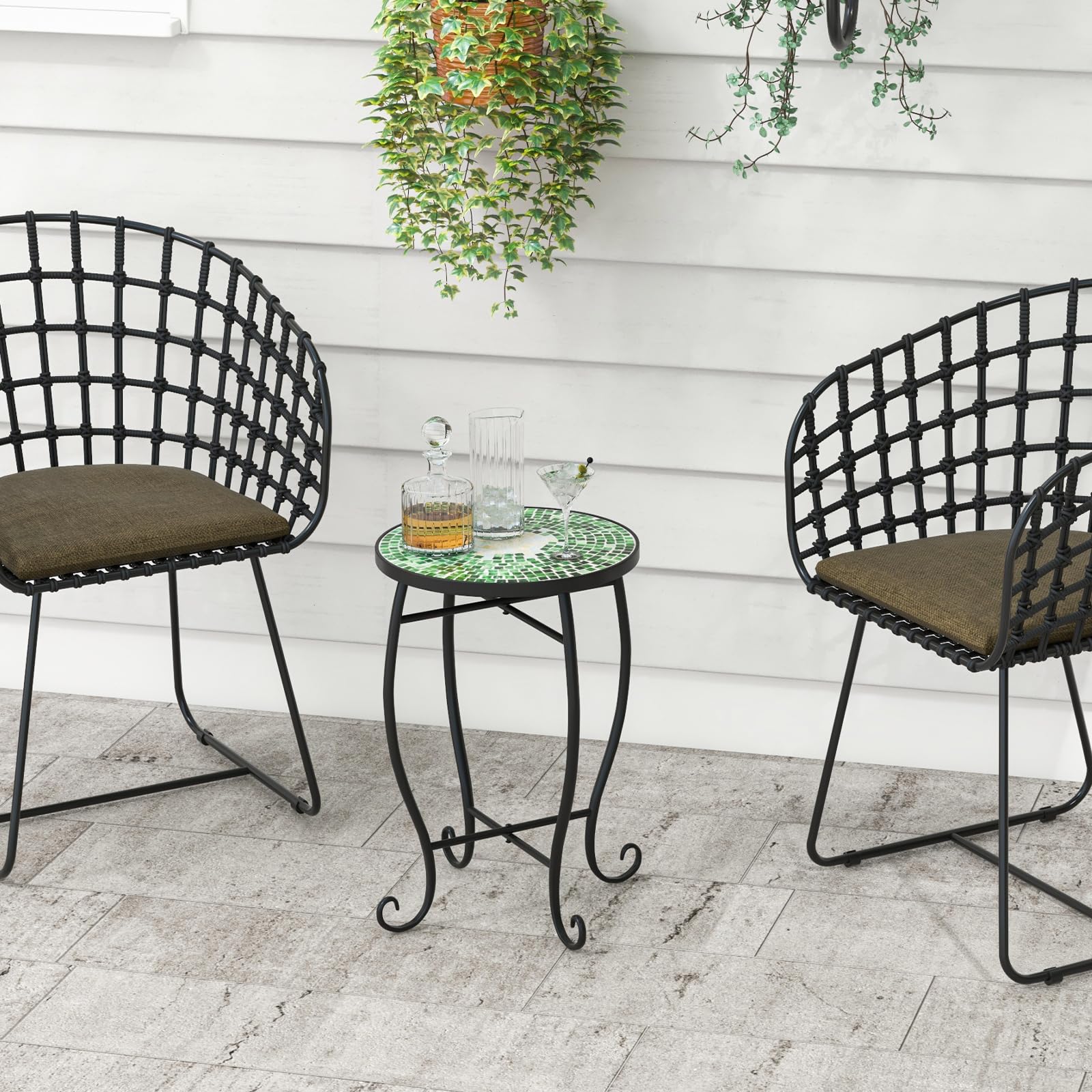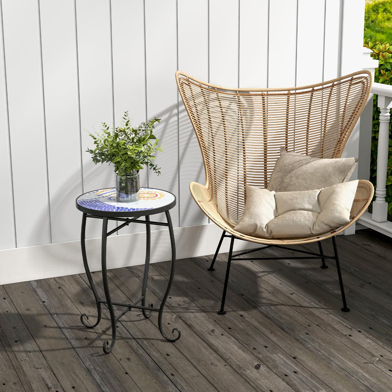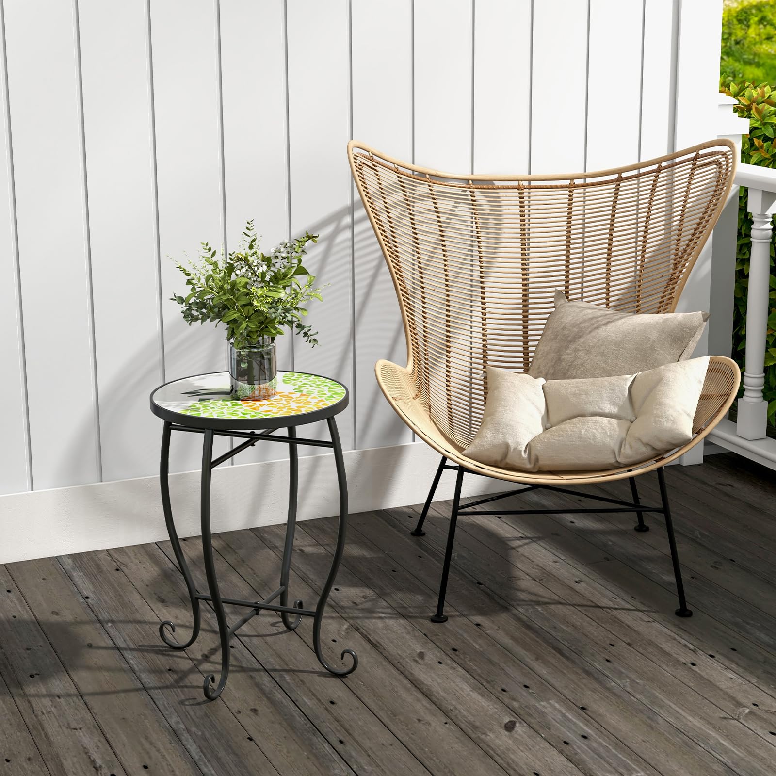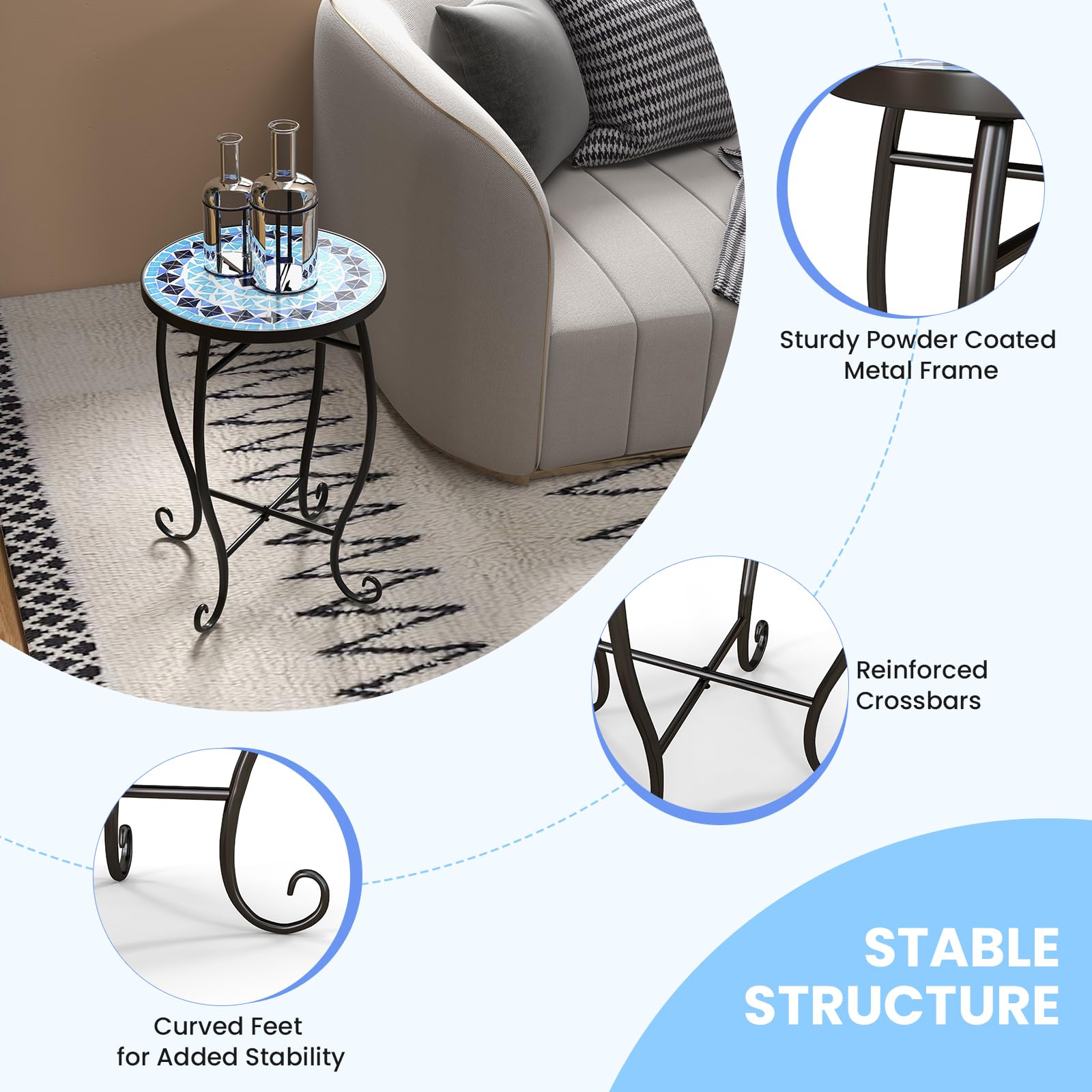- [Artistic Mosaic Ceramic Tile Tabletop]: This outdoor side table features a colorful mosaic ceramic tile top, which is not only exquisite, but also durable. Plus, the 14" diameter tabletop is perfect for placing foods, drinks, books, plants or decorations.