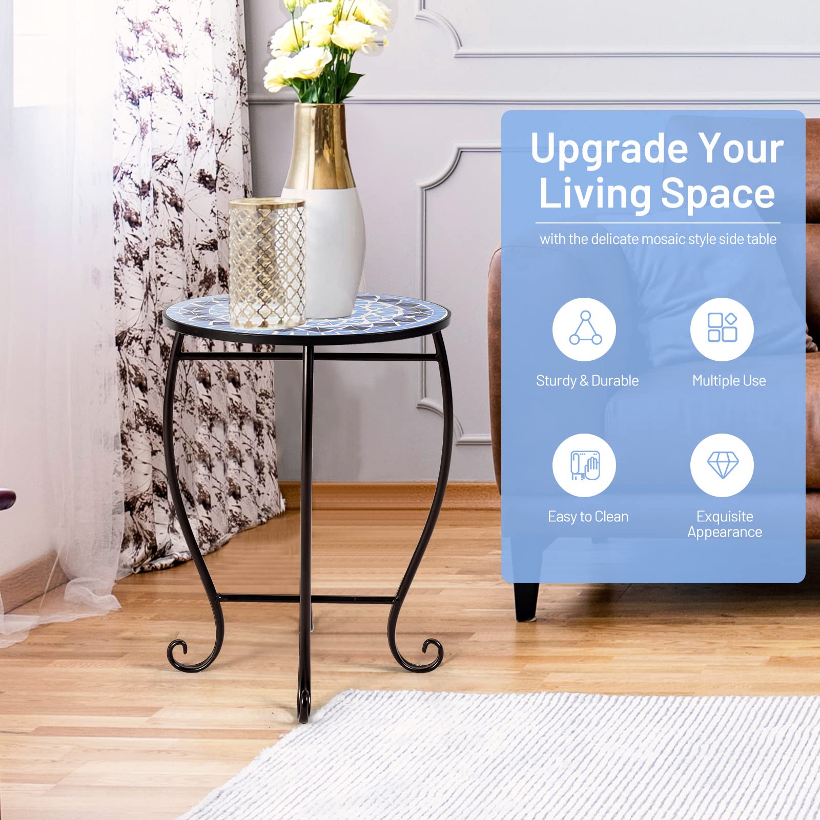 - [Easy Assembly & Maintenance]: Equipped with detailed instructions, this mosaic round accent table can be put together in a short time. The smooth surface is easy to wipe clean. And the round smooth edges will protect you from potential hurts.