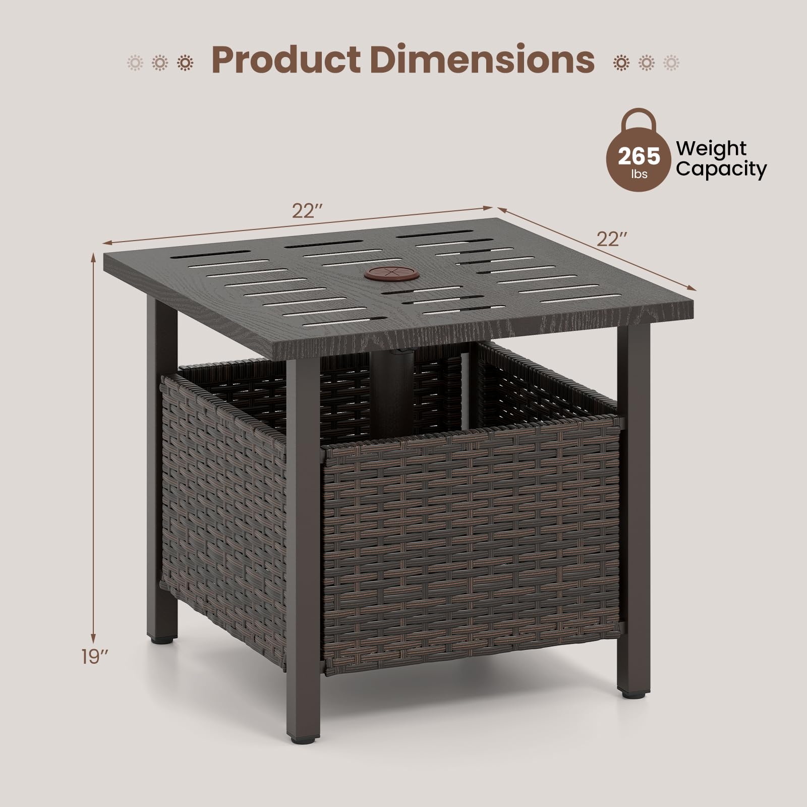 Tangkula Outdoor Side Table with 1.93" Umbrella Hole