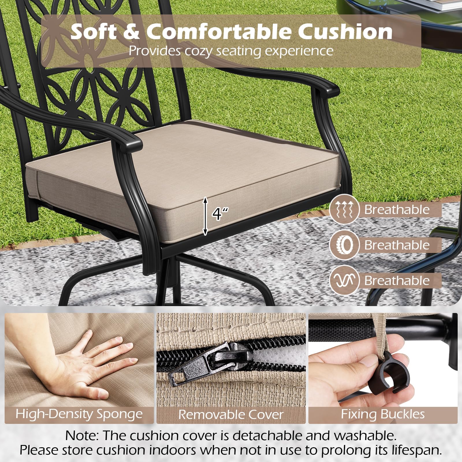 - 360-Degree Swivel Function: Our patio bar chairs are perfect for social gatherings with the 360-degree swivel feature. These stools allow you to rotate in any direction, making conversations more engaging and accessible for everyone at your patio or garden party.