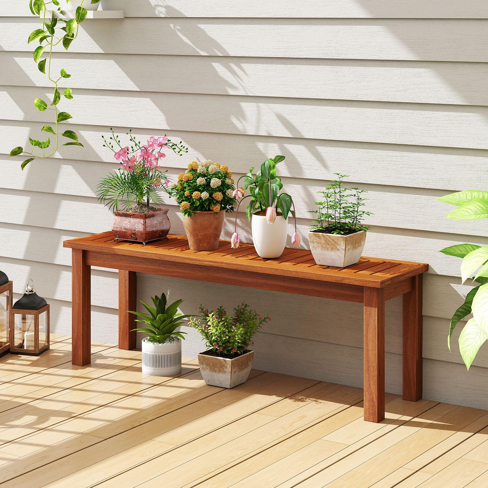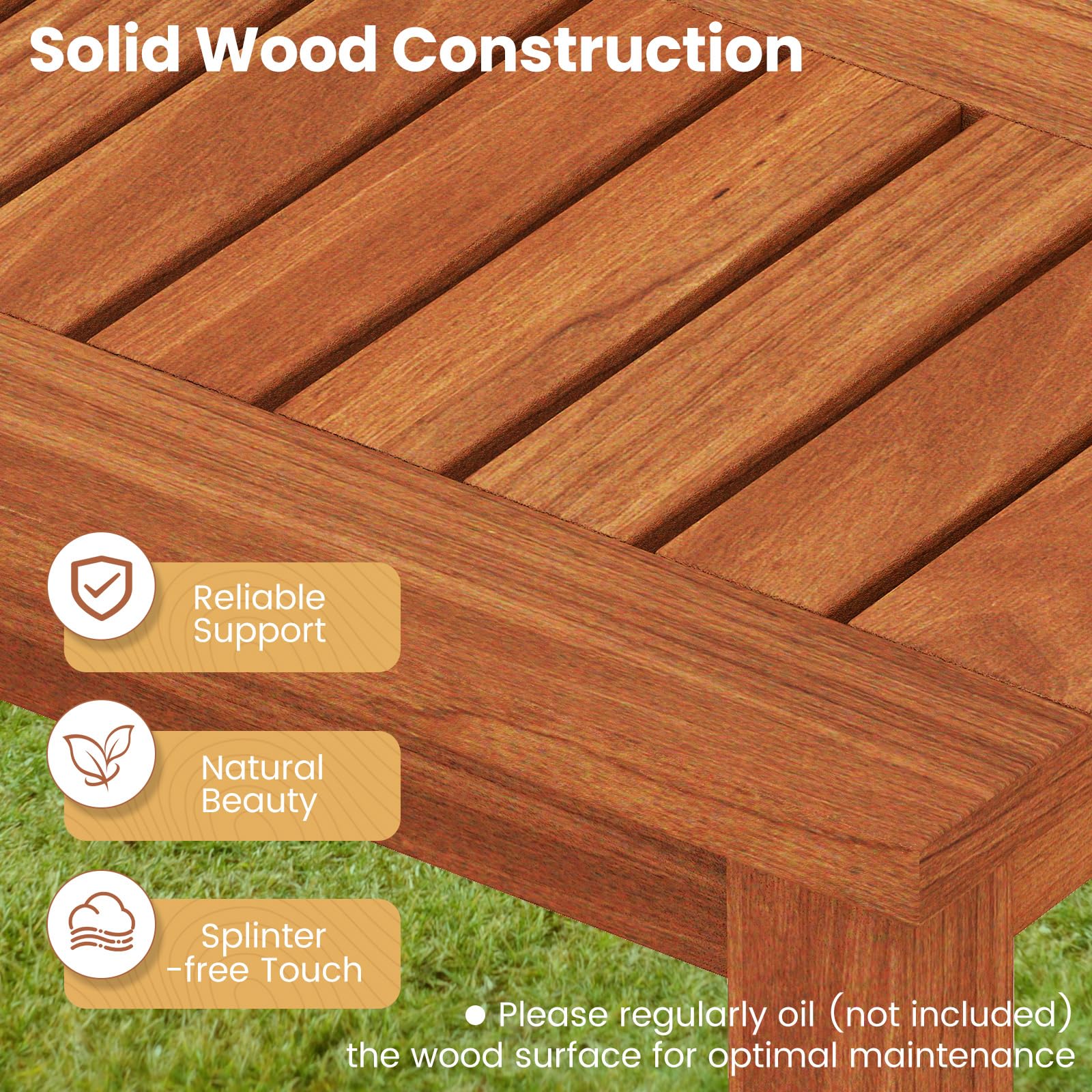 This loveseat bench features a spacious 2-person seating area with a slatted seat designed for breathability and a splinter-free surface that ensures a comfortable touch. Crafted from high-hardness solid wood, this outside seating furniture offers stable and reliable support for everyday use. Additionally, it showcases natural wood grain, adding rustic charm that enhances your outdoors. The patio bench comes 85% pre-assembled, requiring only the attachment of 4 legs, which makes for a quick and easy setup.