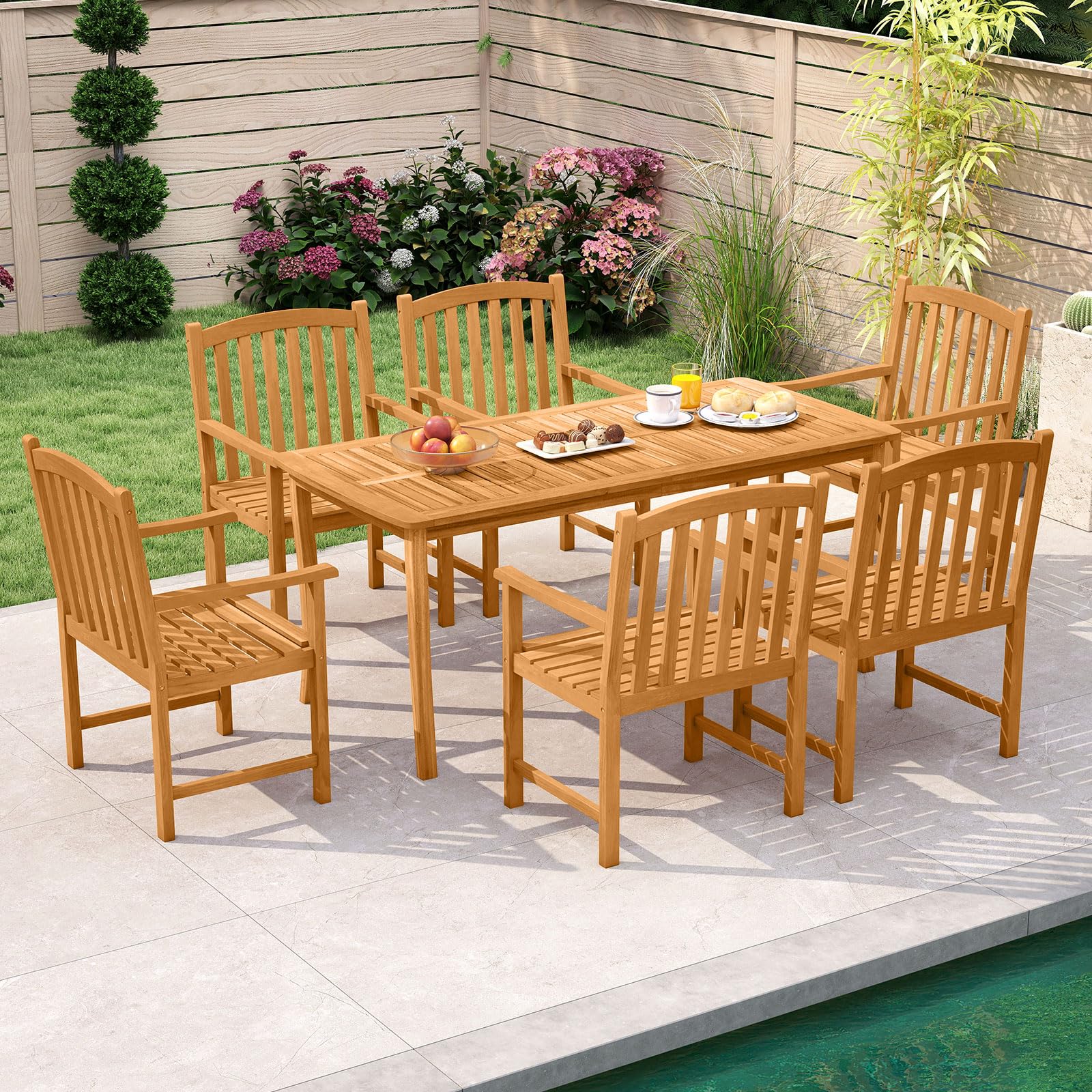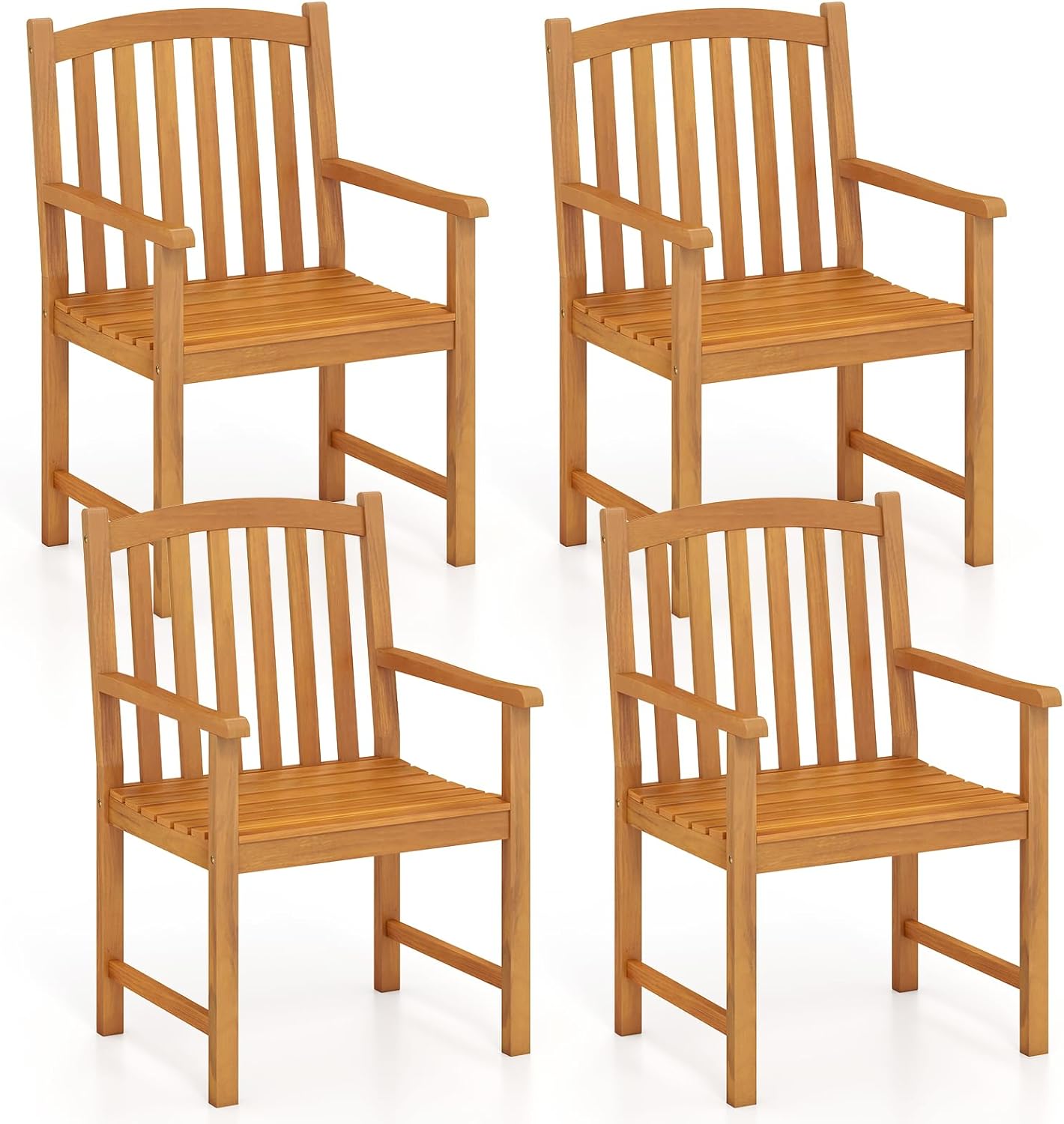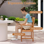 Made from high-strength acacia wood, these chairs with rounded edges features reinforced crossbars to support up to 400 lbs. The slatted design ensures breathability, while the natural finish is DIY paintable for personalized style. Perfect for patios, porches, or poolside relaxation, these acacia wood armchairs combine ergonomic comfort with long-lasting sturdiness, transforming any backyard into a cozy retreat.