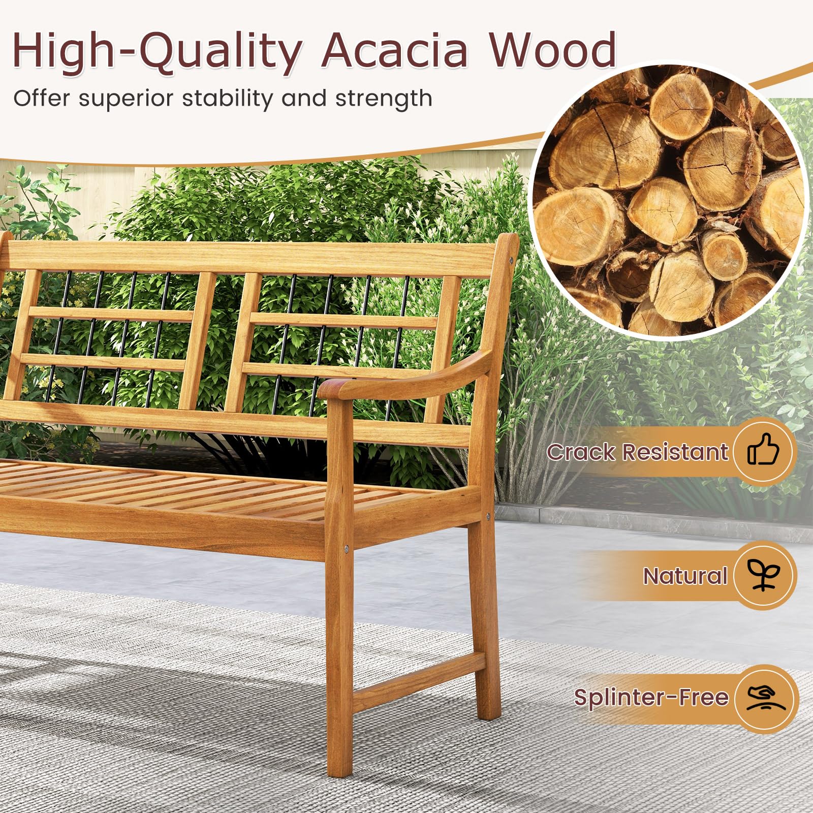 - Premium Acacia Wood Frame: Crafted from high-quality acacia wood which is crack-resistant, this patio bench offers superior stability and strength, making it a reliable choice for outdoor relaxation.