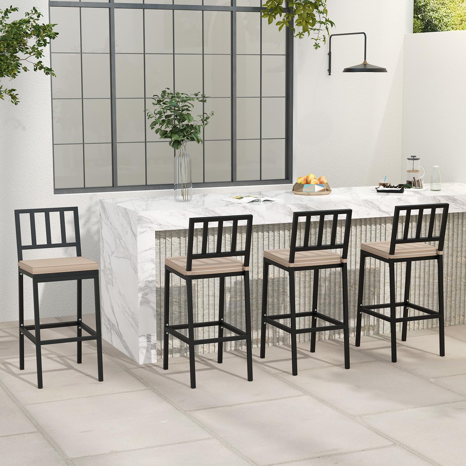 - Industrial-Style Charm: Enhance your home with this patio bar chair set featuring stylish industrial design. The simple lines blend seamlessly with any decor, while the elegant hollowed-outs elevate the sophistication of your furniture ensemble.
