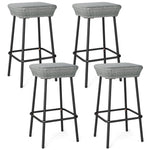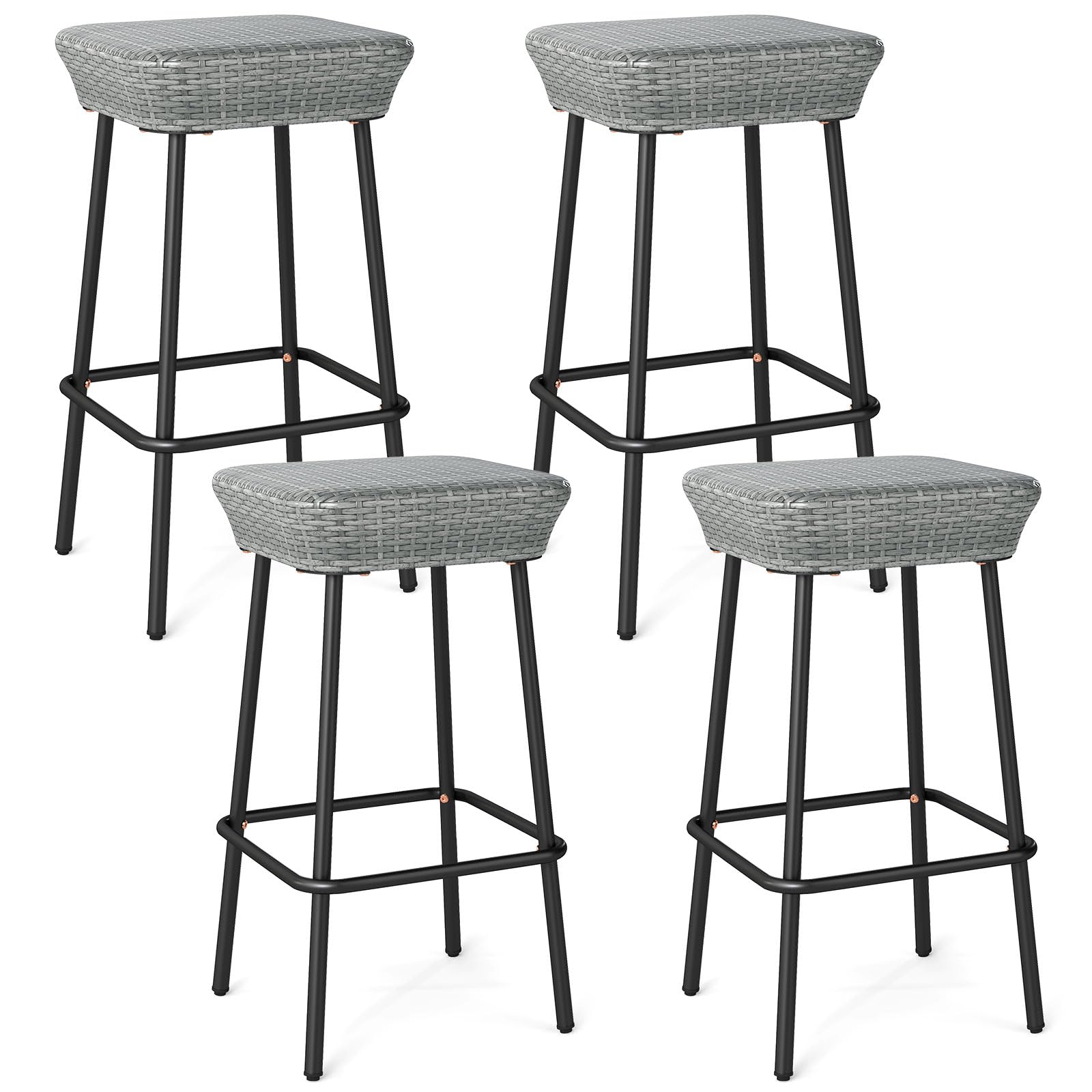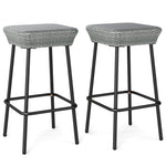 Enjoy ultimate relaxation with this set of 2 stylish patio bar stools, perfect for backyard, porch, or poolside setting. Each stool features a square seat crafted from premium PE rattan that is sunproof, anti-fading and breathable, ensuring both comfort and longevity. The robust metal frame supports up to 400 lbs and includes adjustable foot pads for added stability. The minimalist design, featuring a backless and armless construction with a cozy footrest, not only offers flexible seating options but also adds a touch of modern elegance. These bar height seats with well-designed details combine functionality with style, making them an excellent addition to your outdoor furnishings.