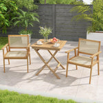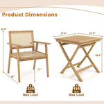 Crafted from top-grade teak wood, all the 3 pieces boast unparalleled sturdiness and crack-resistance for long-lasting enjoyment. Designed with meticulous attention to detail, the chair features a woven rattan seat and back that perfectly complement the wood frame, adding a sophisticated touch while remaining resistant to fading and allowing for optimal breathability. Furthermore, the ergonomically curved backrest provides the utmost relaxation. Moreover, the table features space-saving design after you loosen the screws of legs. From the backyard to the poolside or deck, this exceptional wood bistro set adds a touch of opulence to any outdoor space.