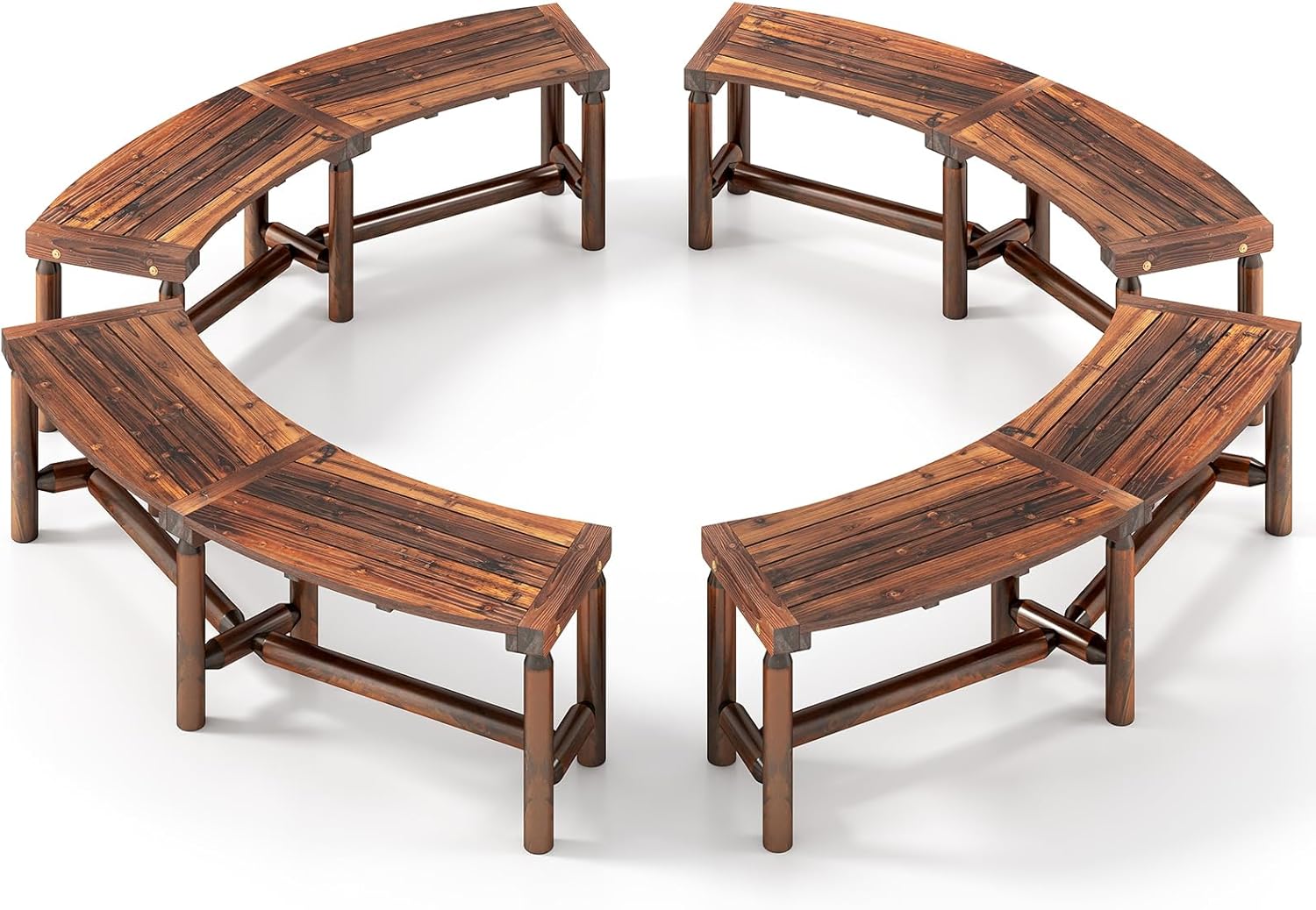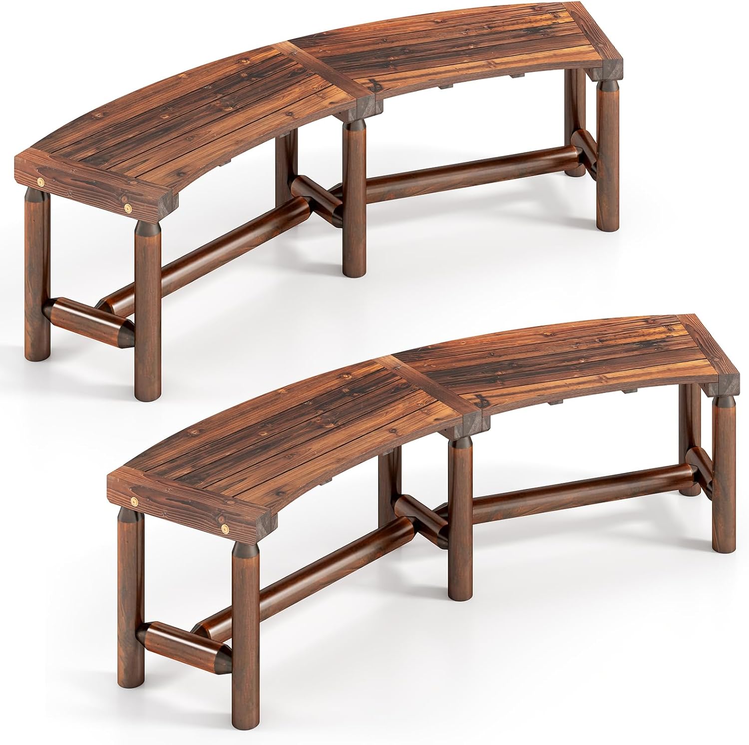 Elevate your outdoor relaxing area with this elegantly curved wood fire pit bench.