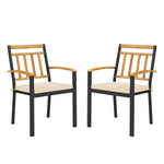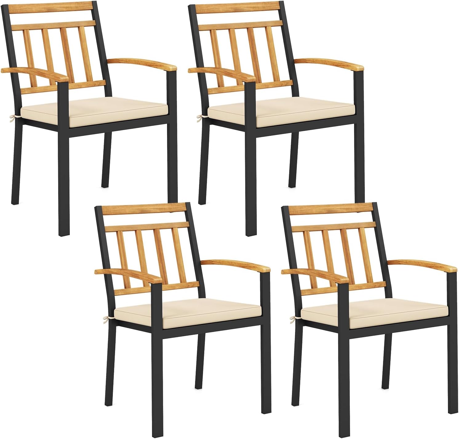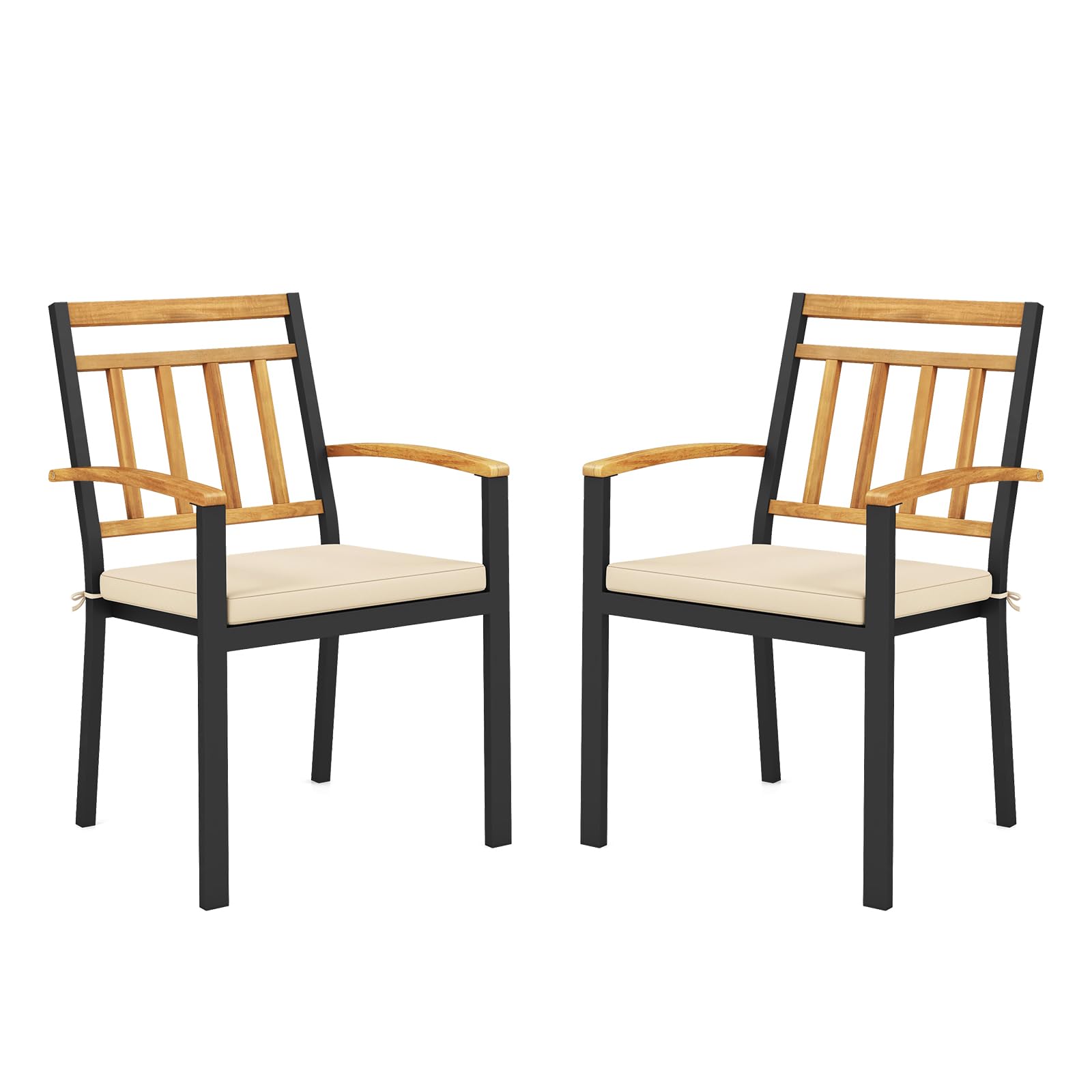 - Metal & Wood Combine Frame: The patio dining chairs set is made of solid metal frame, which ensures a large load-bearing of 400 lbs. Moreover, the backrest and armrests are crafted with premium acacia wood, which exudes natural beauty without compromising durability.