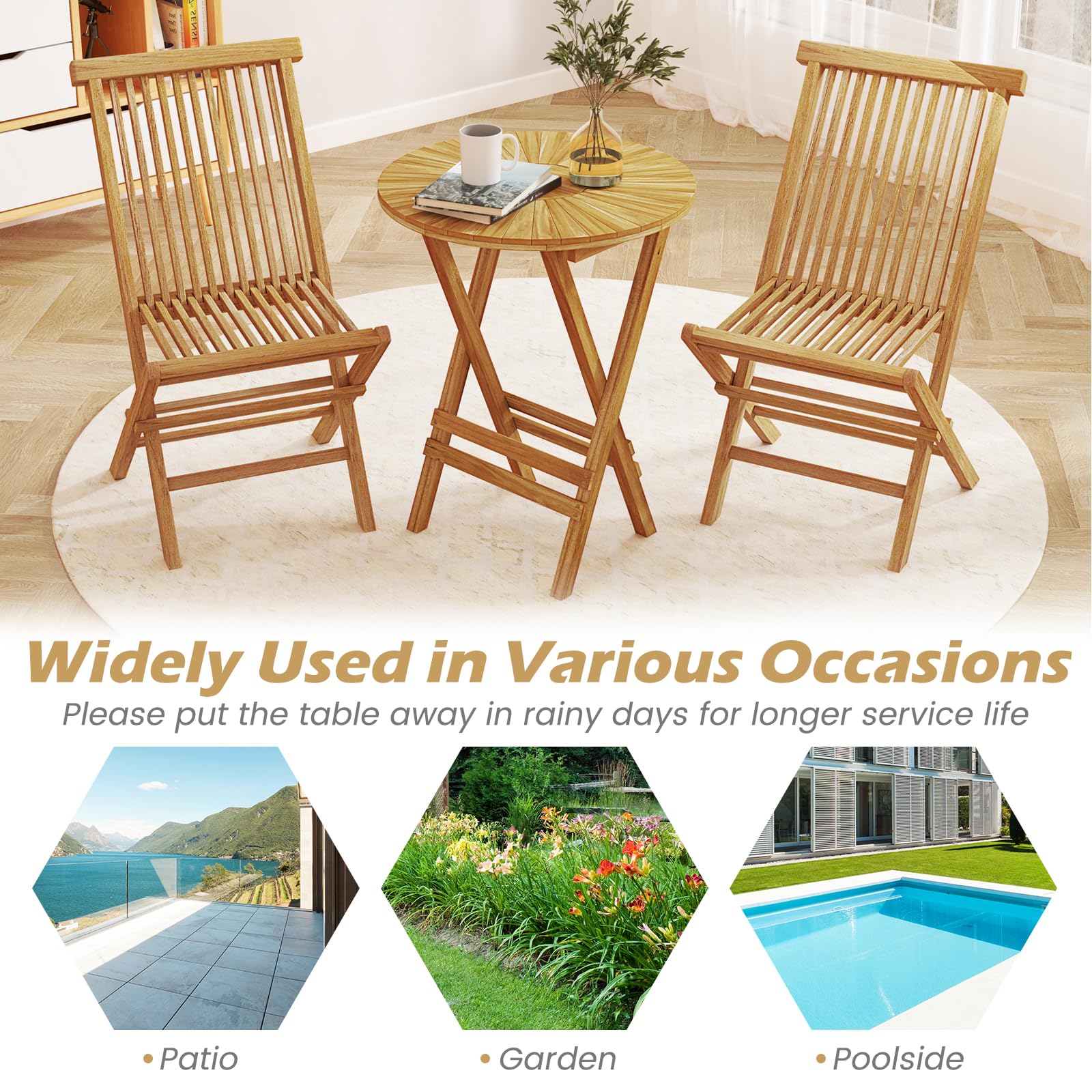 Please put the table away in rainy days for longer service life