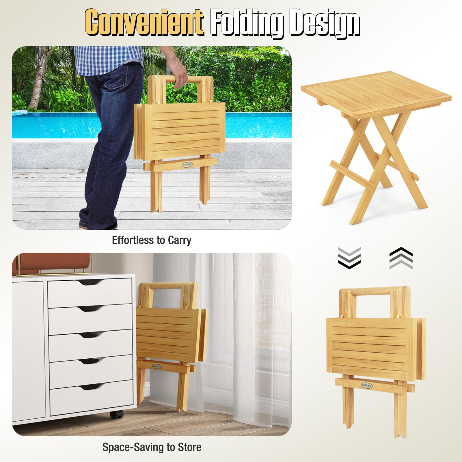 Elevate your outdoor relaxation with this elegant patio folding side table, meticulously crafted from premium teak wood.