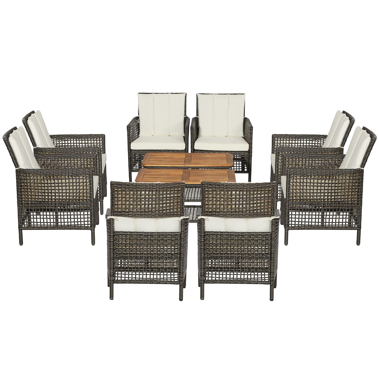 - Delivery & Flexible Layout: This 10-piece patio furniture set is shipped in 6 boxes that may arrive on different days. Box 1 includes 1 table and 1 bag of screws, box 2 includes 2 chairs, 2 back cushions, and 2 seat cushions and box 3 includes 2 chairs, 2 back cushions, and 2 seat cushions. You can rearrange these pieces freely to match different sizes of space perfectly.