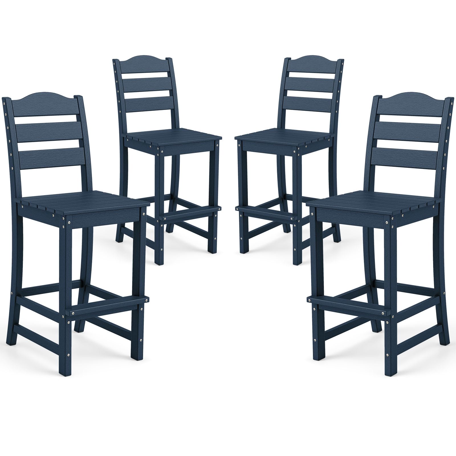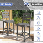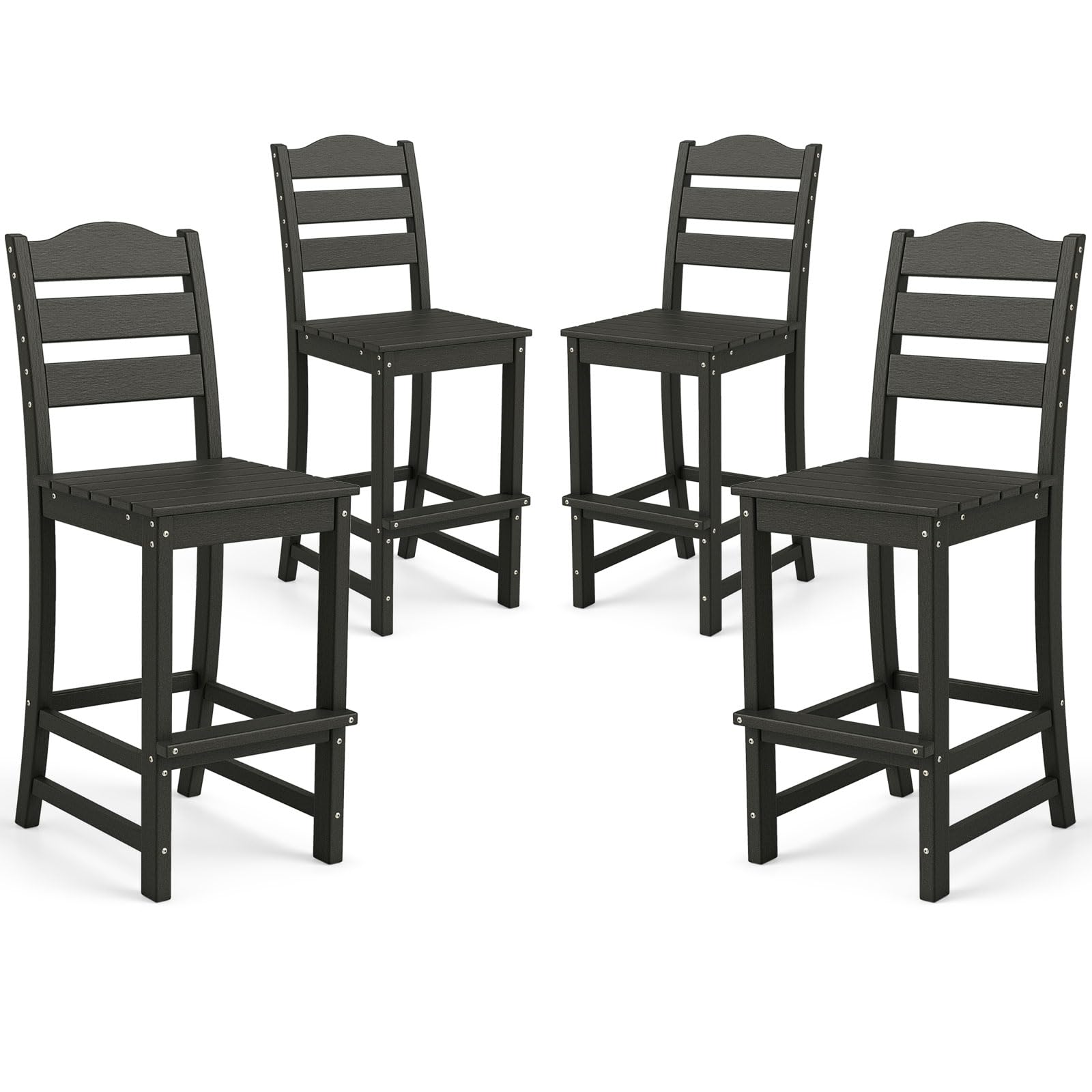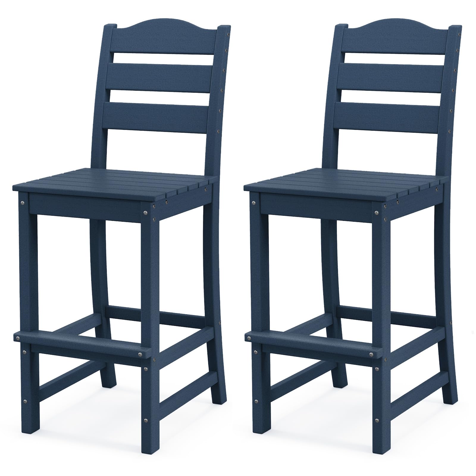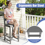Made of built-to-last HDPE, the barstool is designed to endure any weather condition, ensuring durability for years to come. With a 30-inch height, this stool fits perfectly under standard bars, enhancing any dining or social area with its modern, clean lines. The ergonomic backrest and footrest provide a comfortable seating experience, making it ideal for extended lounge sessions. Versatile in design, this bar height chair will transform your outdoor setting into a stylish and welcoming retreat.