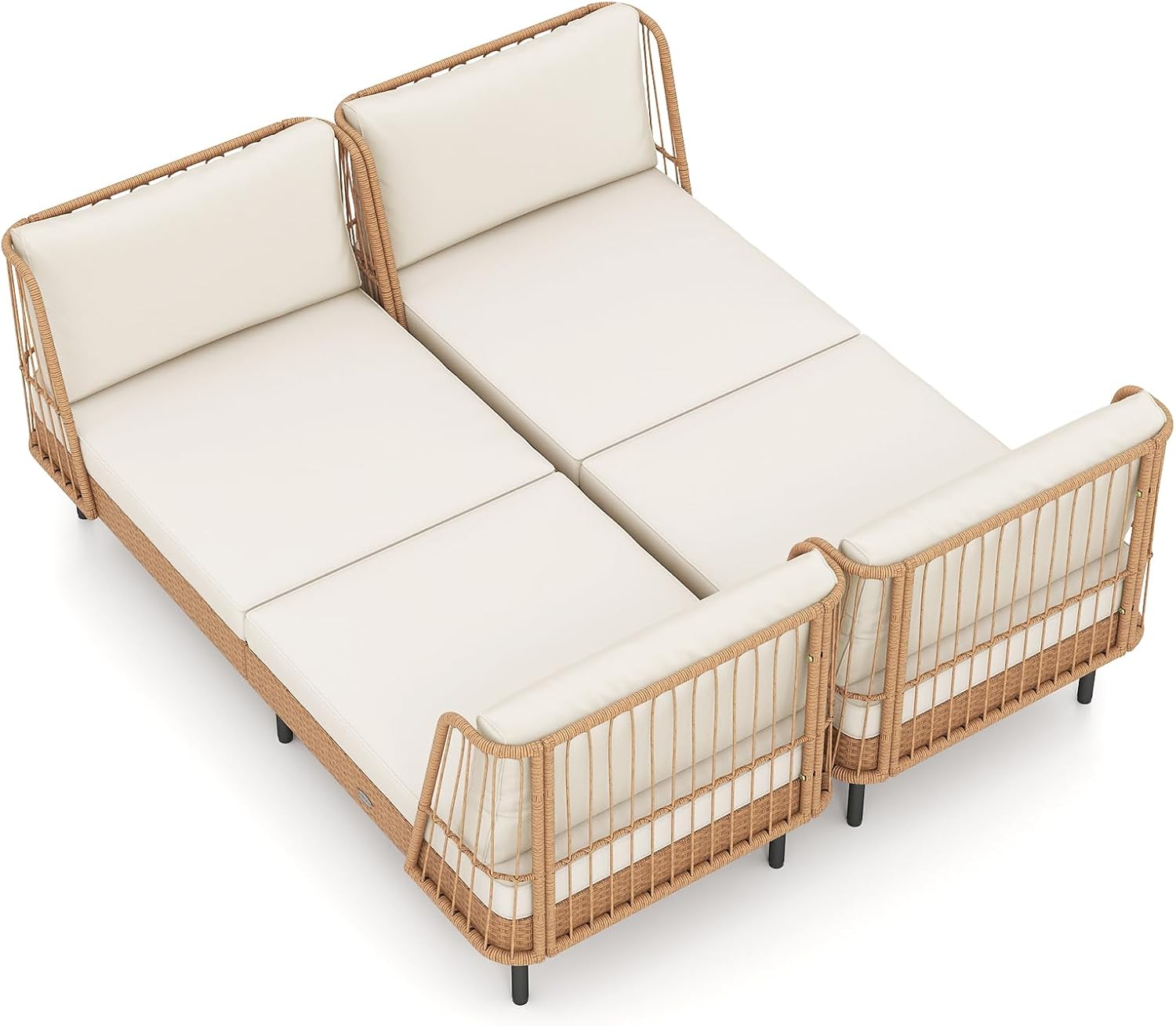 The spacious 72-inch seating width and dual-purpose sides make this patio furniture perfect for lounging or chatting with a friend. With hand-woven and sunlight resistant PE rattan, the loveseat showcases long-lasting elegance. Moreover, soft cushions with removable covers offer cloud-like softness. Supported by reinforced metal frame with adjustable feet, it provides reliable stability and holds up to 800 lbs. Experience ultimate relaxation with this well-made daybed.