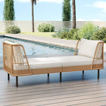 Handwoven PE rattan offers breathable, sun-resistant durability