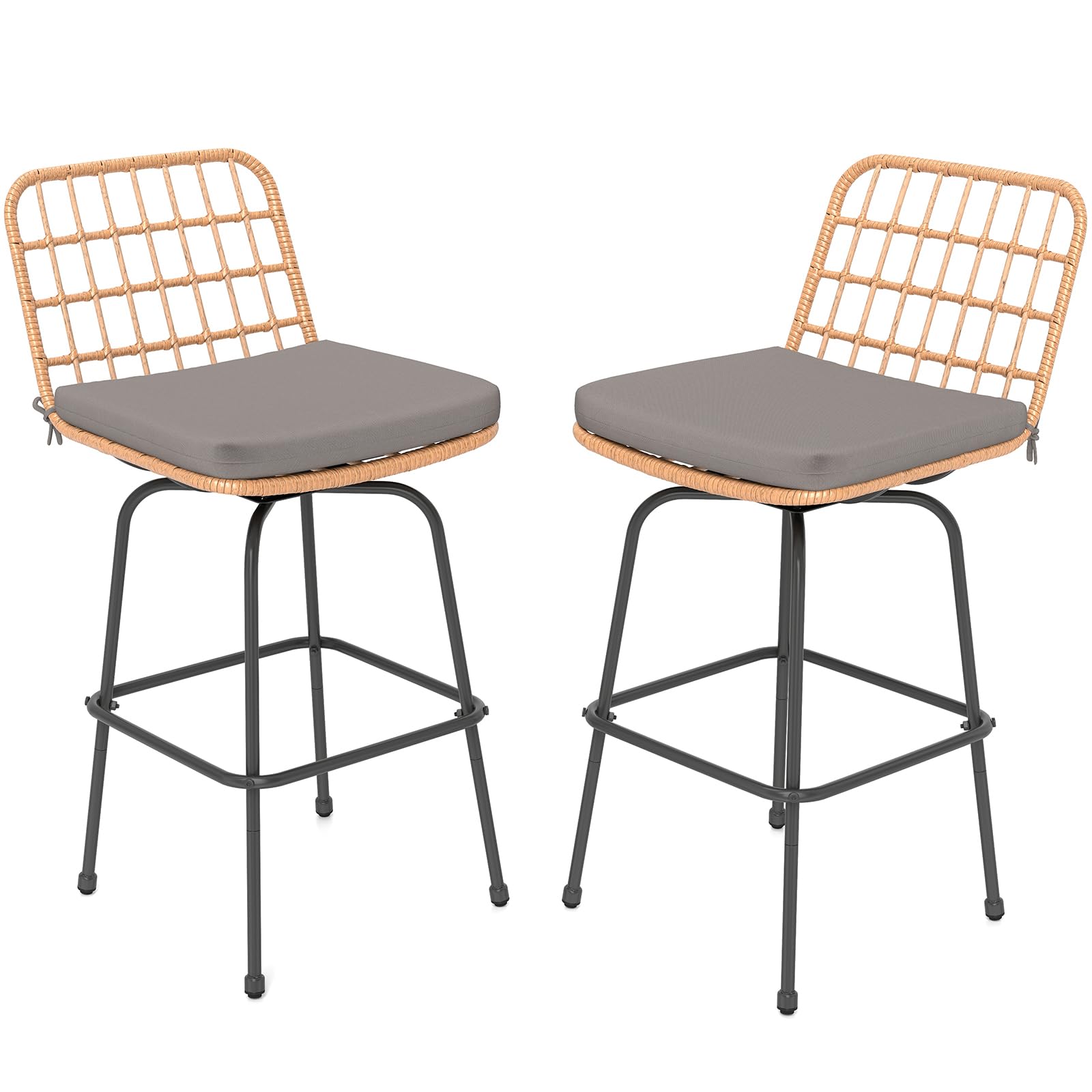 Elevate your outdoor relaxation with this set of 2 patio swivel barstools, blending style and functionality for the ultimate relaxation experience.