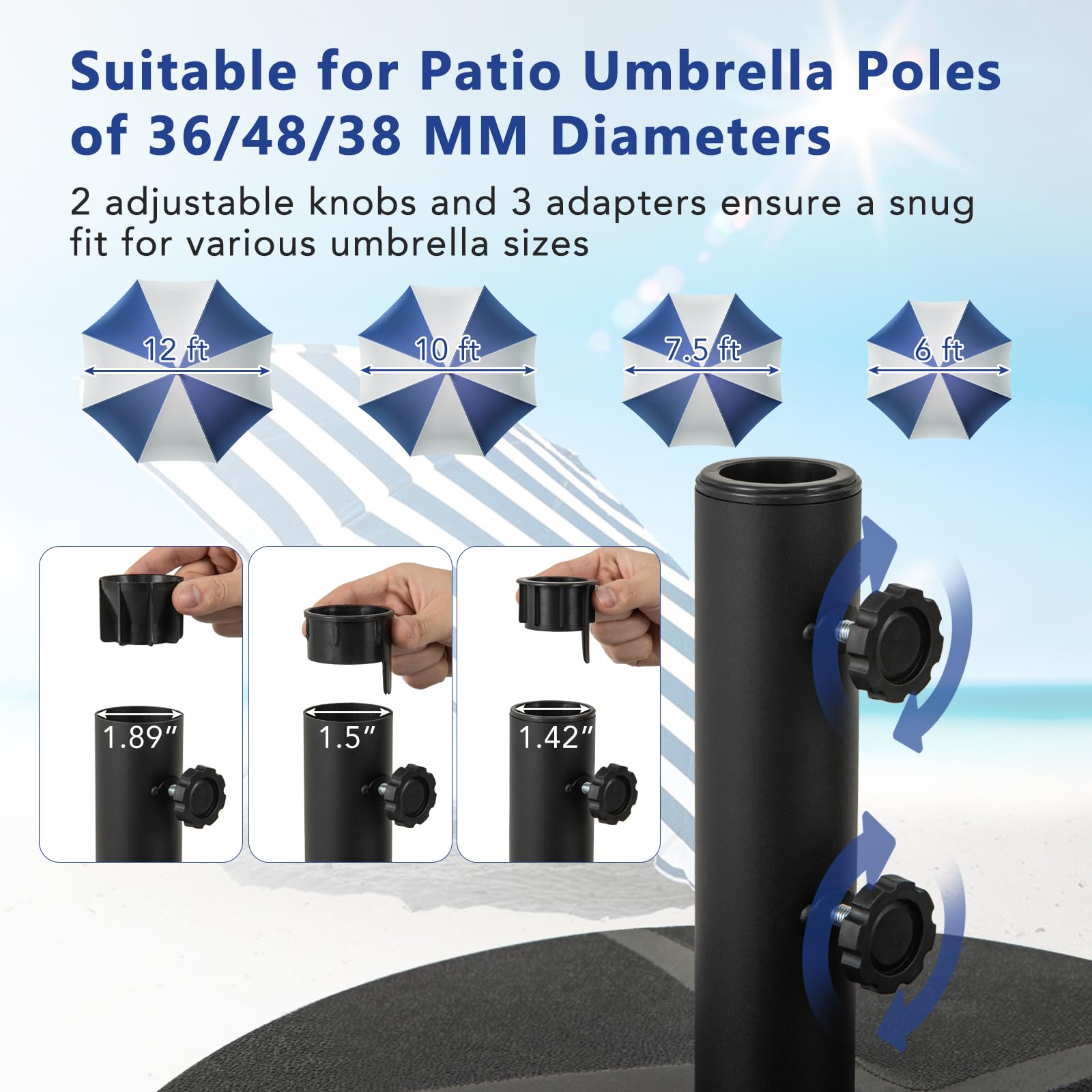 Suitable for patio umbrella poles of 1.89"/1.5"/1.42", 48/38/36 mm, recommended with 6-10 ft/180-300 cm umbrellas