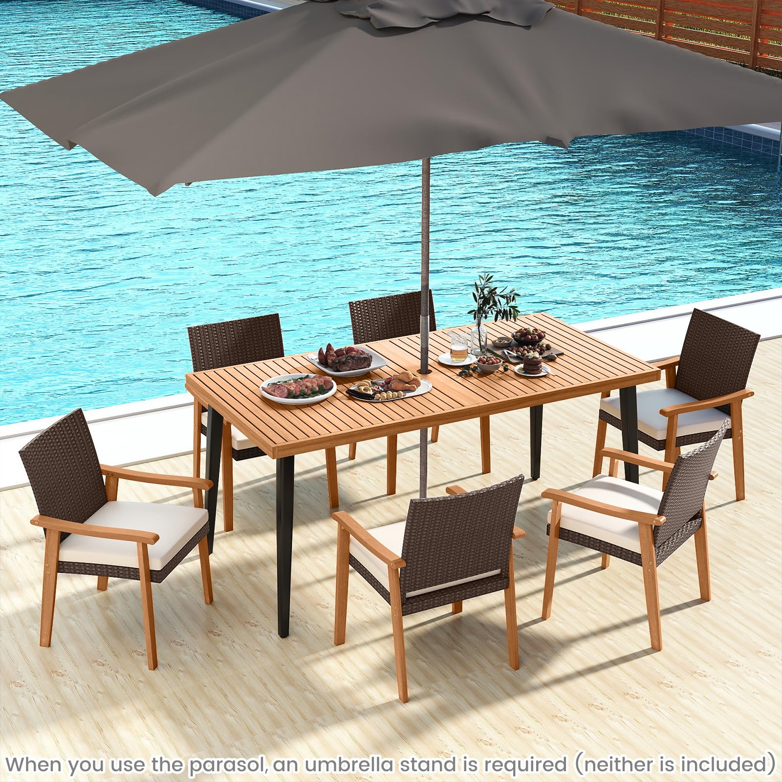 Material: PE Rattan, Polyester Fabric, Sponge, Acacia Wood, Metal