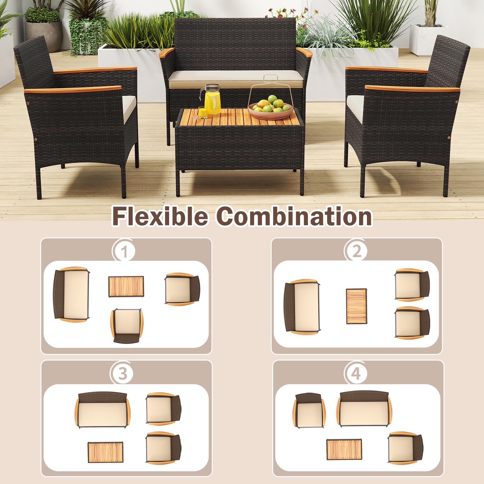 - Appealing Rattan: Crafted from hand-woven mix brown PE rattan, this furniture set features long-lasting intricate weave that complements the natural beauty of its acacia wood parts, elevating your patio aesthetics.
