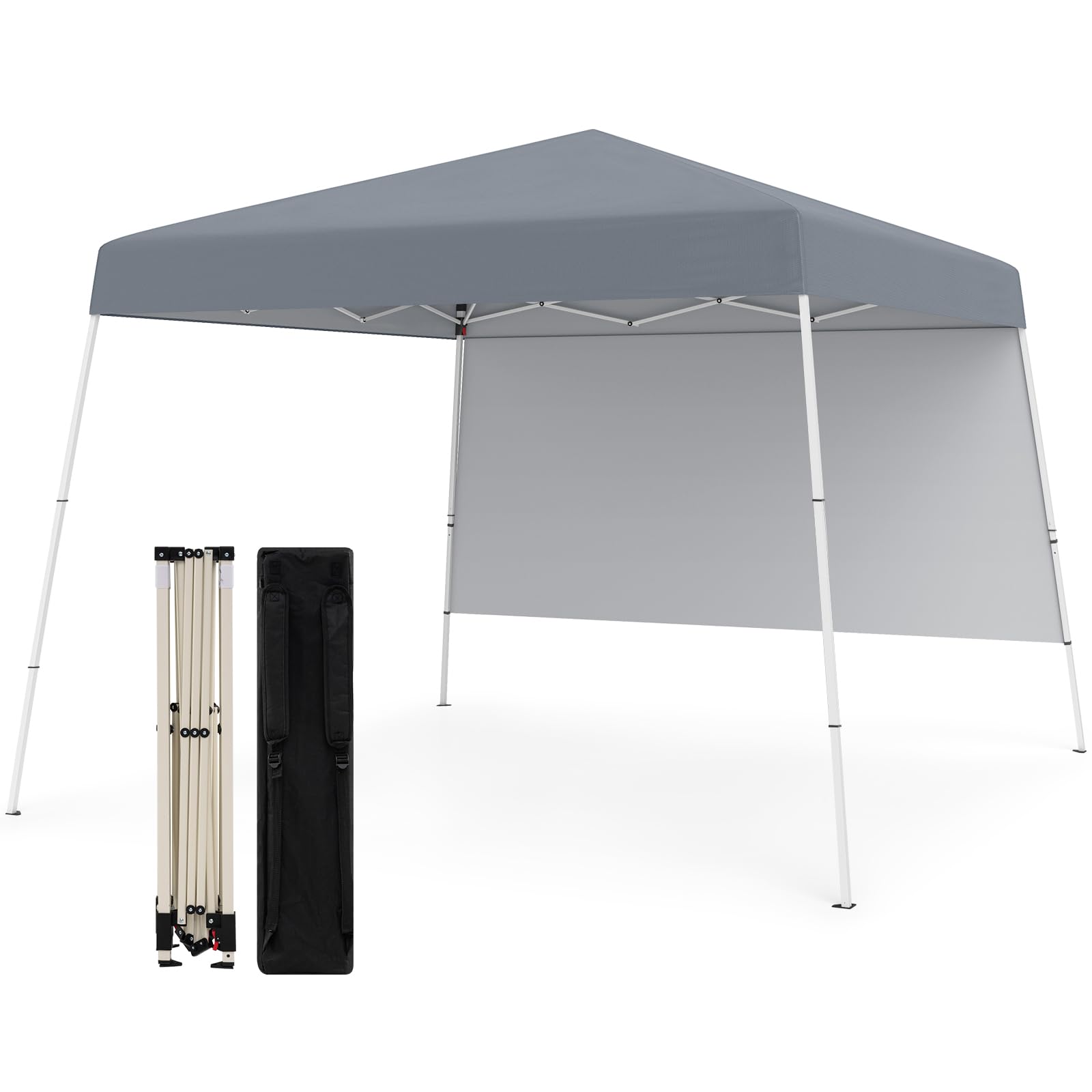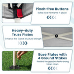 The 10 x 10 ft large gazebo shelter comes with a sidewall to block the sunlight from desired directions, making it the ideal choice for gatherings, sports events, parties or BBQs. Crafted with a oxford fabric canopy top, the outdoor commercial tent is designed to withstand tears. Plus, the canopy is coated with a silver layer, ensuring excellent sun protection. To ensure stability, 4 included ground stakes can be used to secure the tent. Plus, the sturdy truss structure further enhance the tent's strength, making it a dependable shelter. Additionally, the canopy tent features a pop-up structure that allows for simple assembly without the need for any tools. When not in use, the tent can be conveniently stored in the portable backpack provided, making it effortless to transport from one place to another.