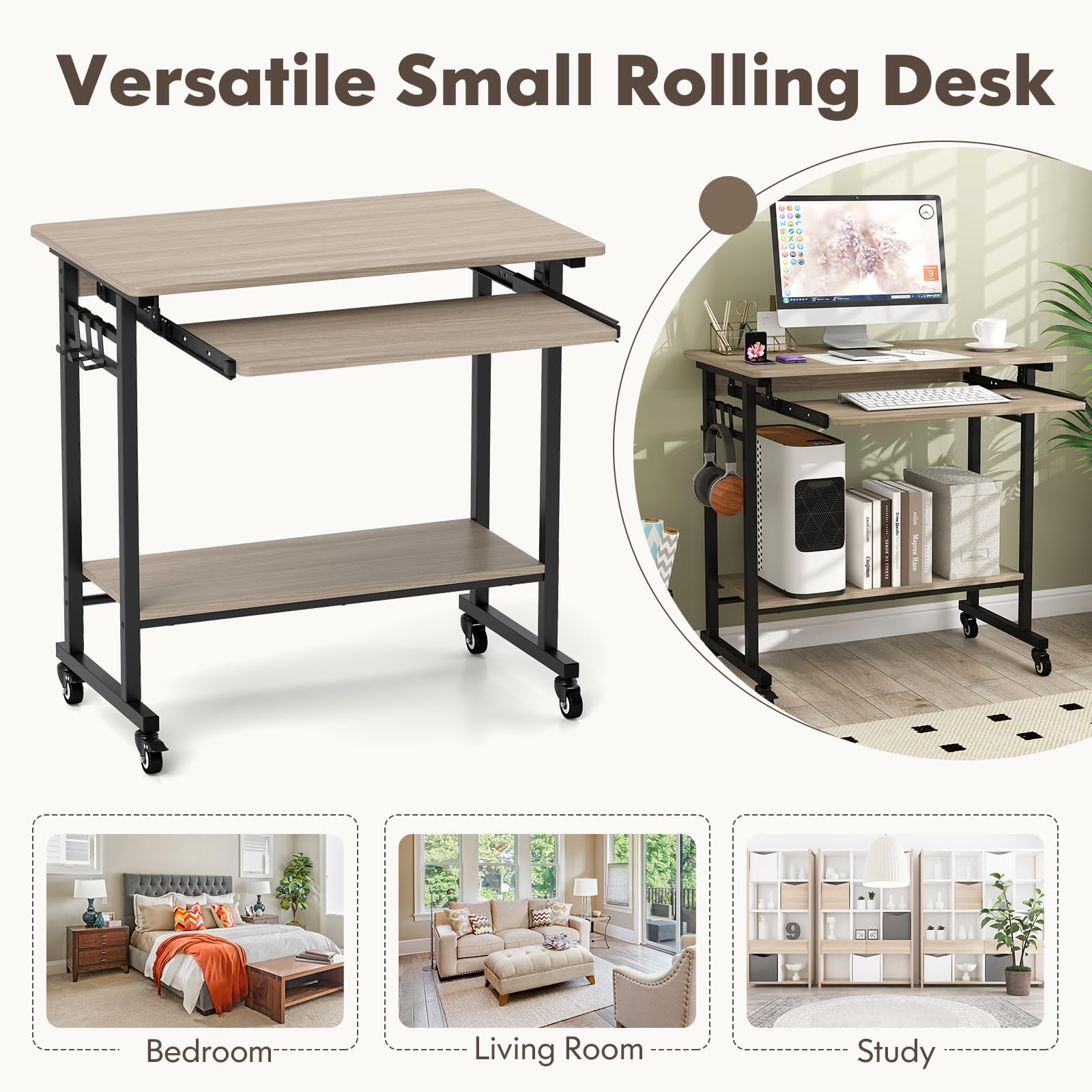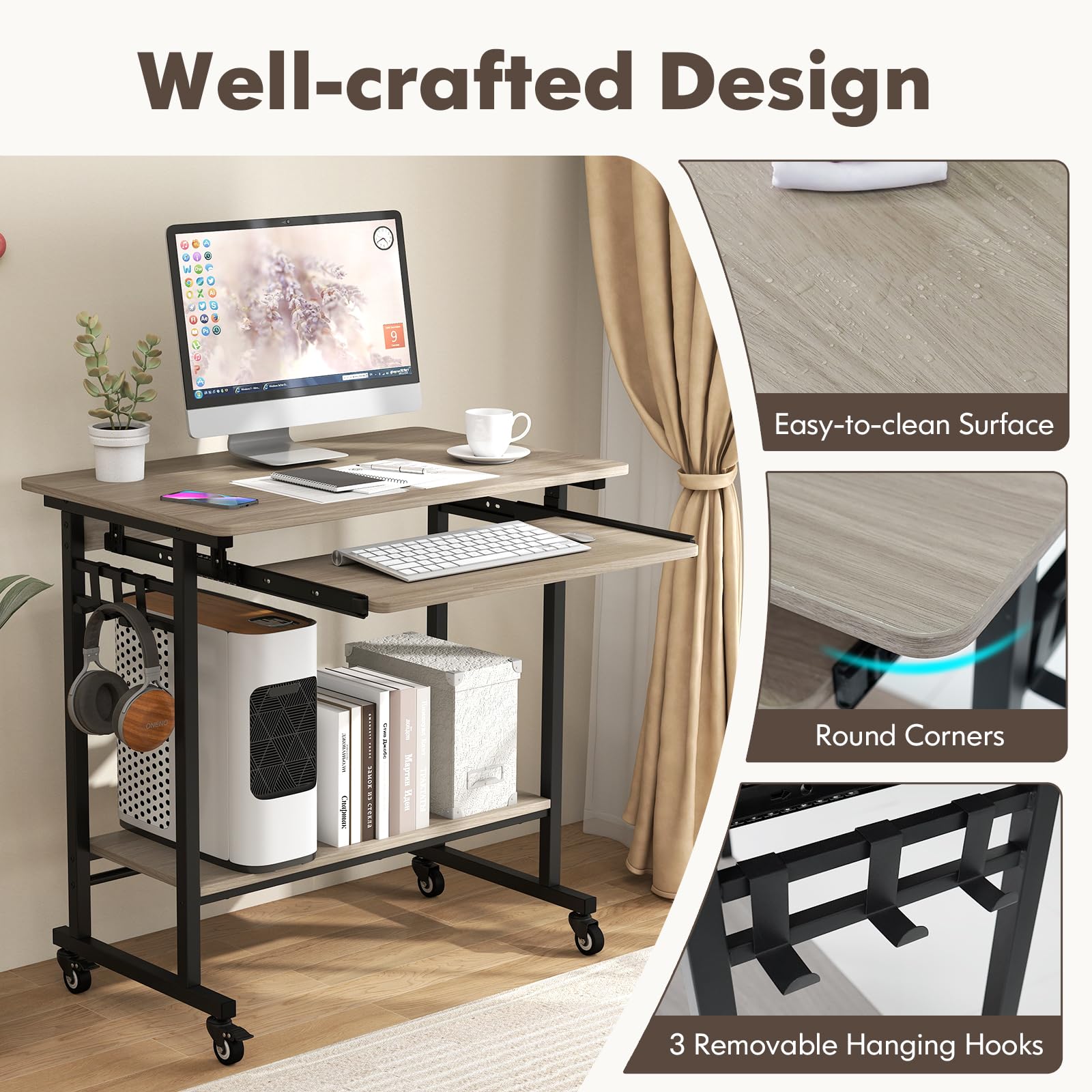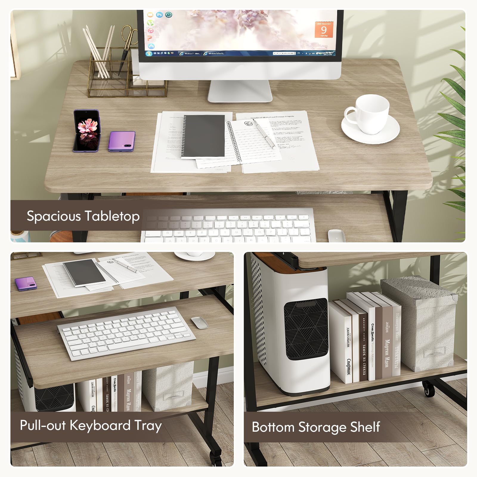 Discover the ultimate space-saving solution with our sleek, ultra-functional mobile computer desk. Perfect for any setting, it glides effortlessly on whisper-quiet, wear-resistant casters, with two that lock for unwavering stability. Ready to support large load capacity, this robust metal desk is your go-to for everything from hardcore gaming to high-stakes professional work. Organize like a pro with a pull-out keyboard tray, a spacious bottom shelf, and handy hooks - all designed to keep your essentials at your fingertips. Despite its compact size of 31.5" x 19.5", it ensures ample functionality in tight spaces. Plus, cleaning is a breeze and safety’s a given with its rounded corners. Upgrade to flawless efficiency today!
