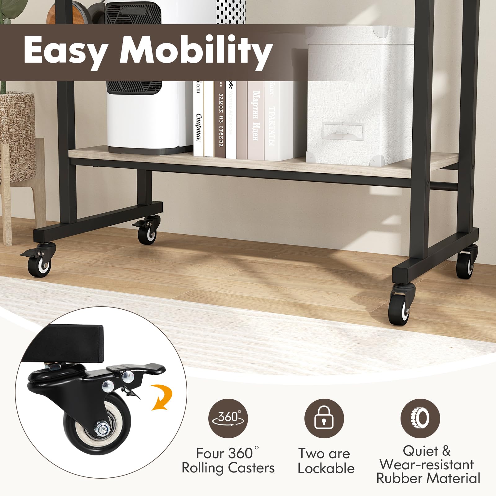 Four 360° rolling casters, two are lockable, ensure easy mobility