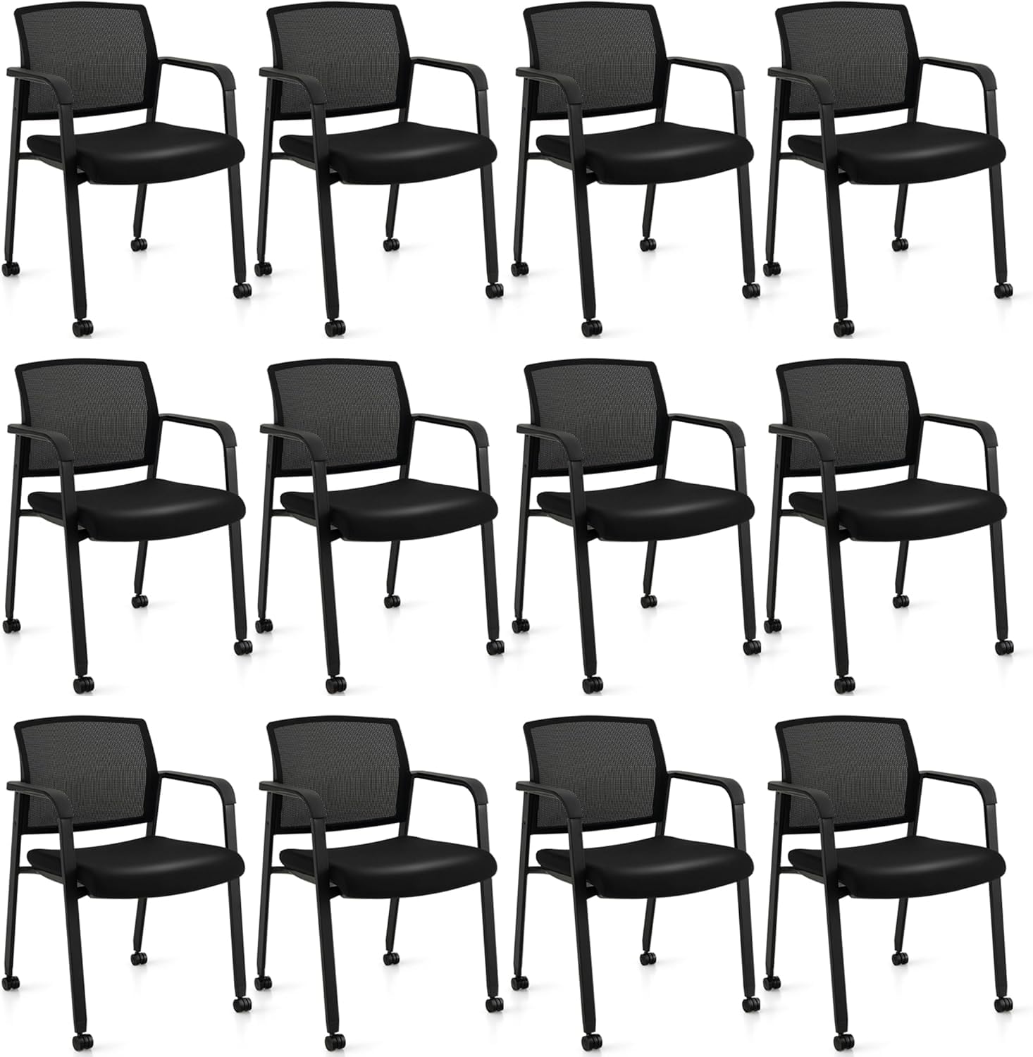 Experience unparalleled comfort and convenience with our stacking office guest chair set! An ergonomic masterpiece designed to support your body with a curved backrest, a soft-padded seat, and integrated armrests. Plus, the lightweight yet sturdy chairs can be easily stacked and be stored in small corners, saving you valuable space in your office. Enjoy the ventilated design with the mesh backrest and punched seat base! With its heavy-duty metal frame, this conference chair can effortlessly accommodate up to 330 lbs, while the smooth rolling casters grant you seamless mobility. Elevate your workspace with the sleek and elegant appearance of our chair, designed with your utmost professionalism in mind.