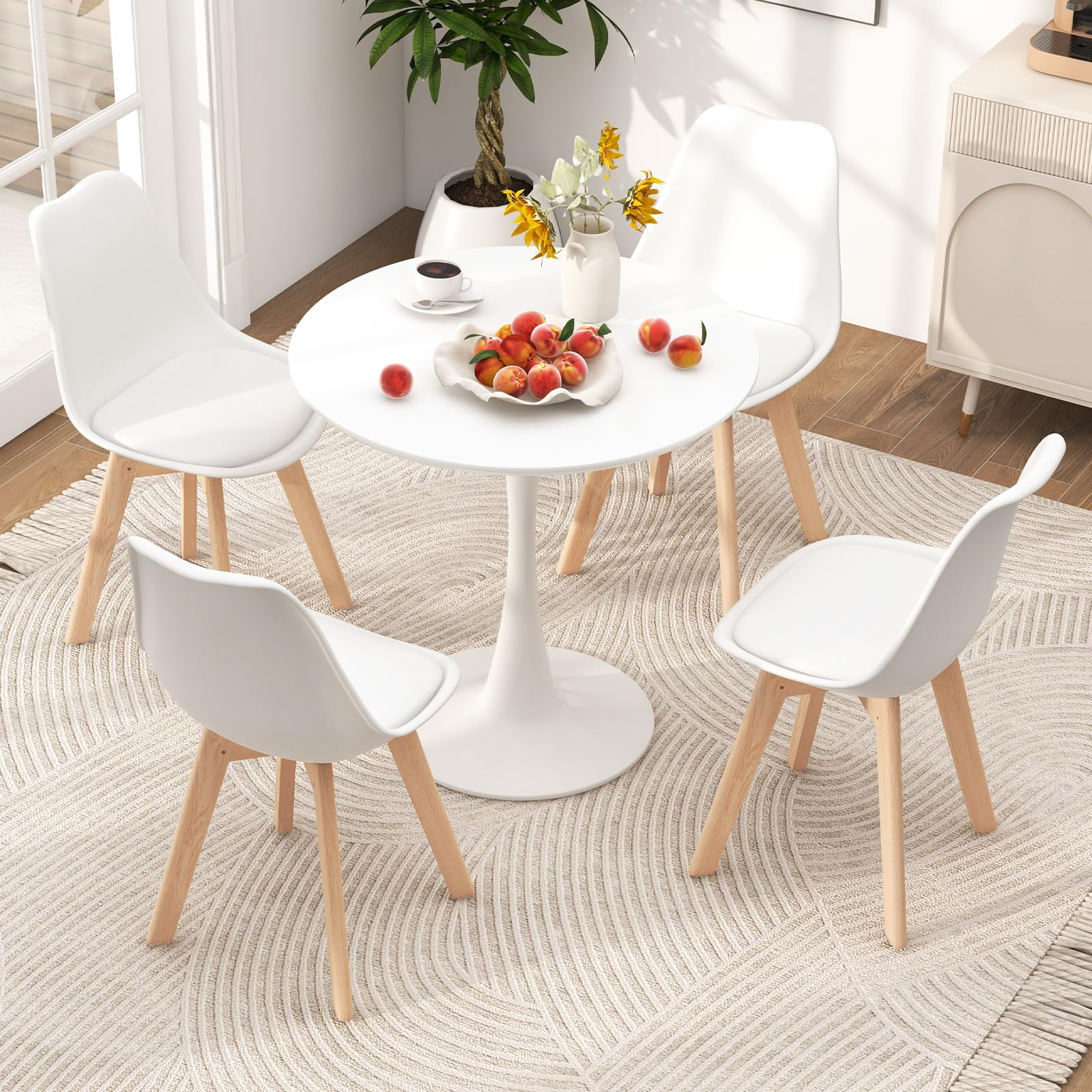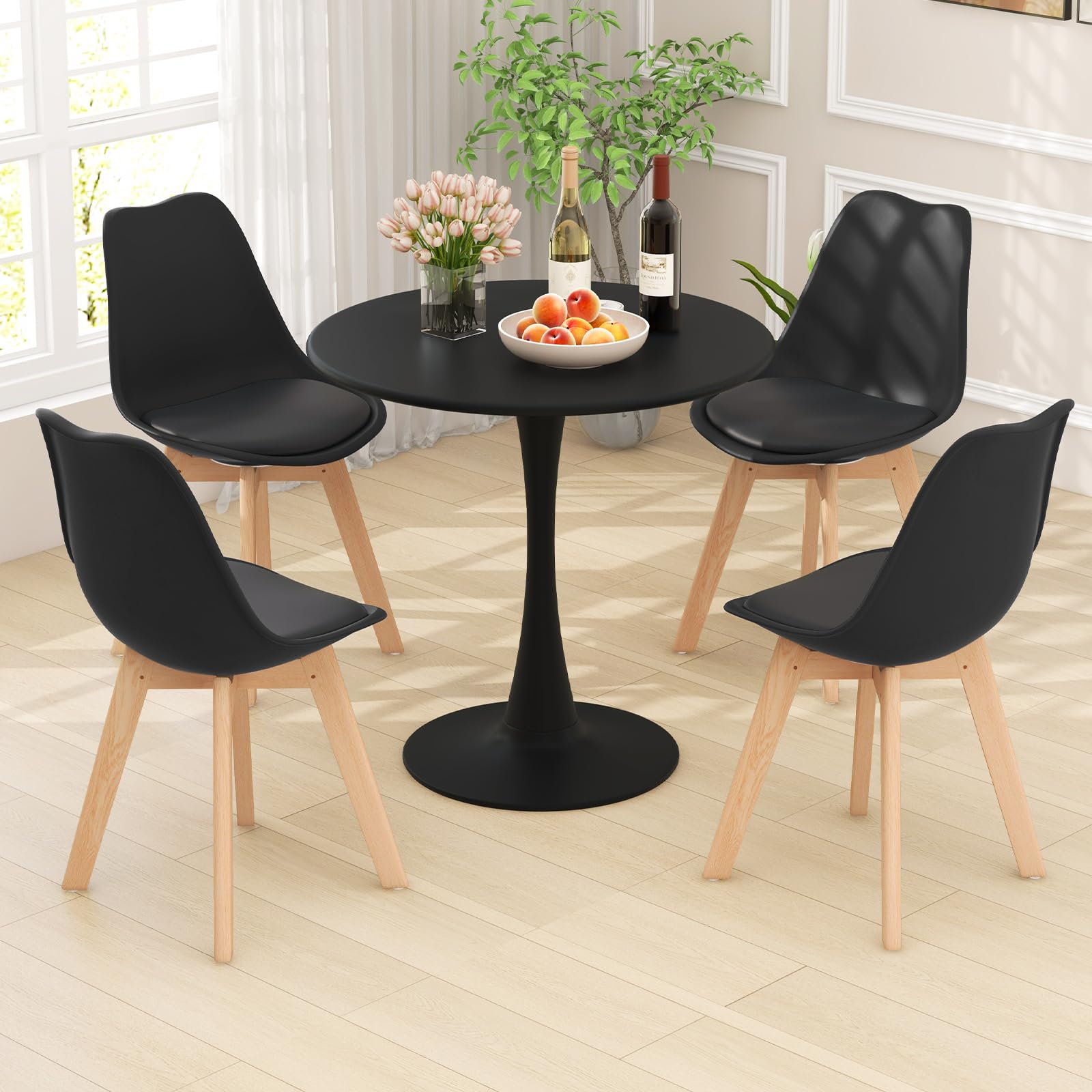 - 5 PCS Dining Table Set: The dining table set is designed with a round table and 4 padded chairs, providing sufficient space to enjoy delicious dining or leisurely afternoon teas with your family or friends.
