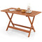 Crafted from anti-crack, splinter-free wood, the dining table with robust X-shaped structure and reinforced crossbars ensures extended use and elegance. Featuring a spacious slatted tabletop, the patio table offers ample room for your dining essentials, while the 2-inch umbrella hole allows for easy addition of a patio umbrella for shade. (The convenient folding design ensures easy storage and portability.) Ideal for any outdoor setting, this table is the perfect complement to your patio, deck, or backyard.