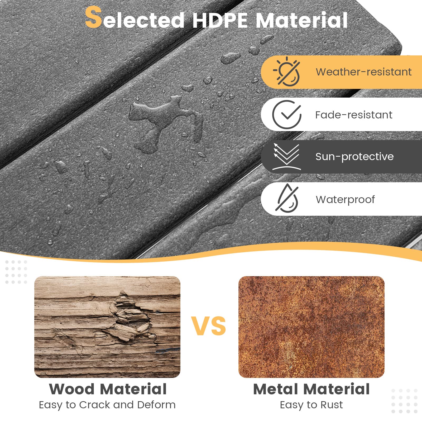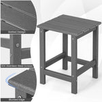 - [Born for Outdoors]: Vary from wood material that is easy to crack and deform and metal material that is easy to rust, this patio side table is made of selected HDPE material, which takes advantage of being weather-resistant, fade-resistant, sun-protective, and waterproof, perfectly standing to the outdoor elements.