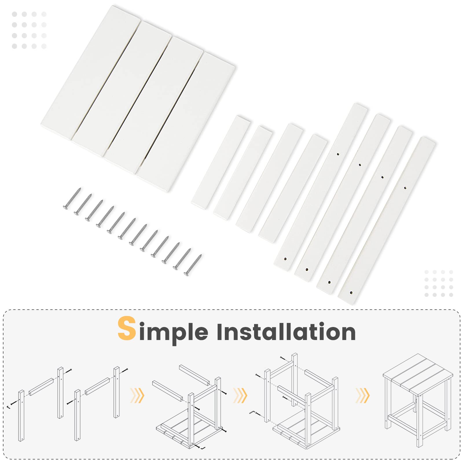 - [Simple Installation]: The assembly of this Adirondack side table is relatively easy, greatly saving your precious time. Measuring 14"x 14"x 18.5"(L x W x H), this end table matches your outdoor Adirondack chairs and indoor sofas (not included) better.