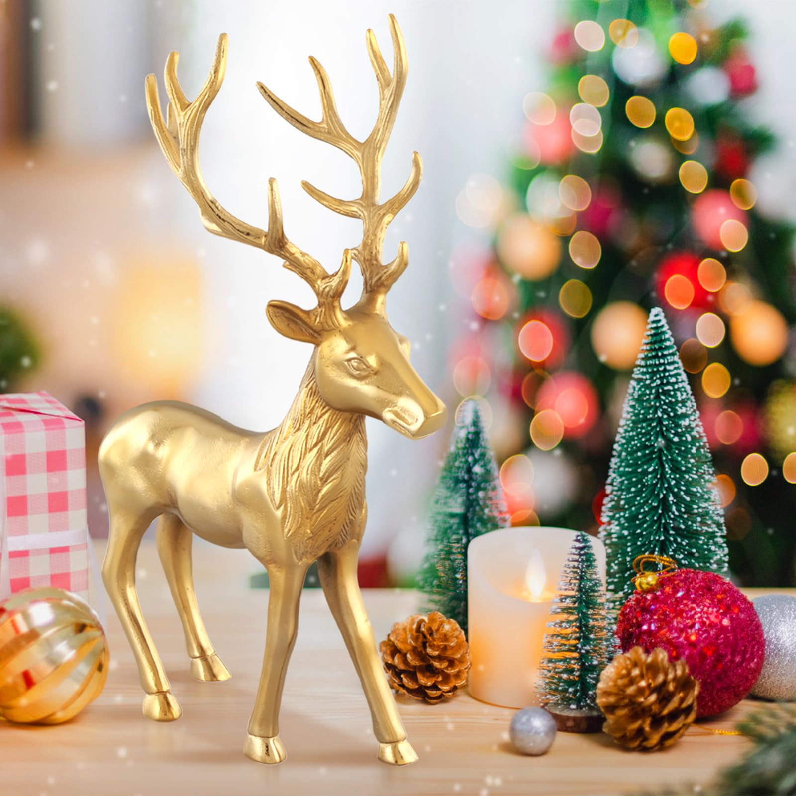 Its lifelike posture, complete with natural antlers & lush deer hair, adds a touch of whimsy to any room. Crafted from premium aluminum, this piece not only resists rust but is also reinforced to ensure its beauty withstands the test of time. Whether standing alone or alongside other holiday decorations, this versatile decor brings the spirit of Christmas indoors, creating a festive atmosphere for all your indoor events. As for maintenance, it couldn't be easier! A quick wipe with a damp cloth is all it takes to keep this reindeer looking its absolute best. By the way, it needs no installation.