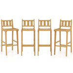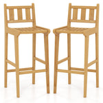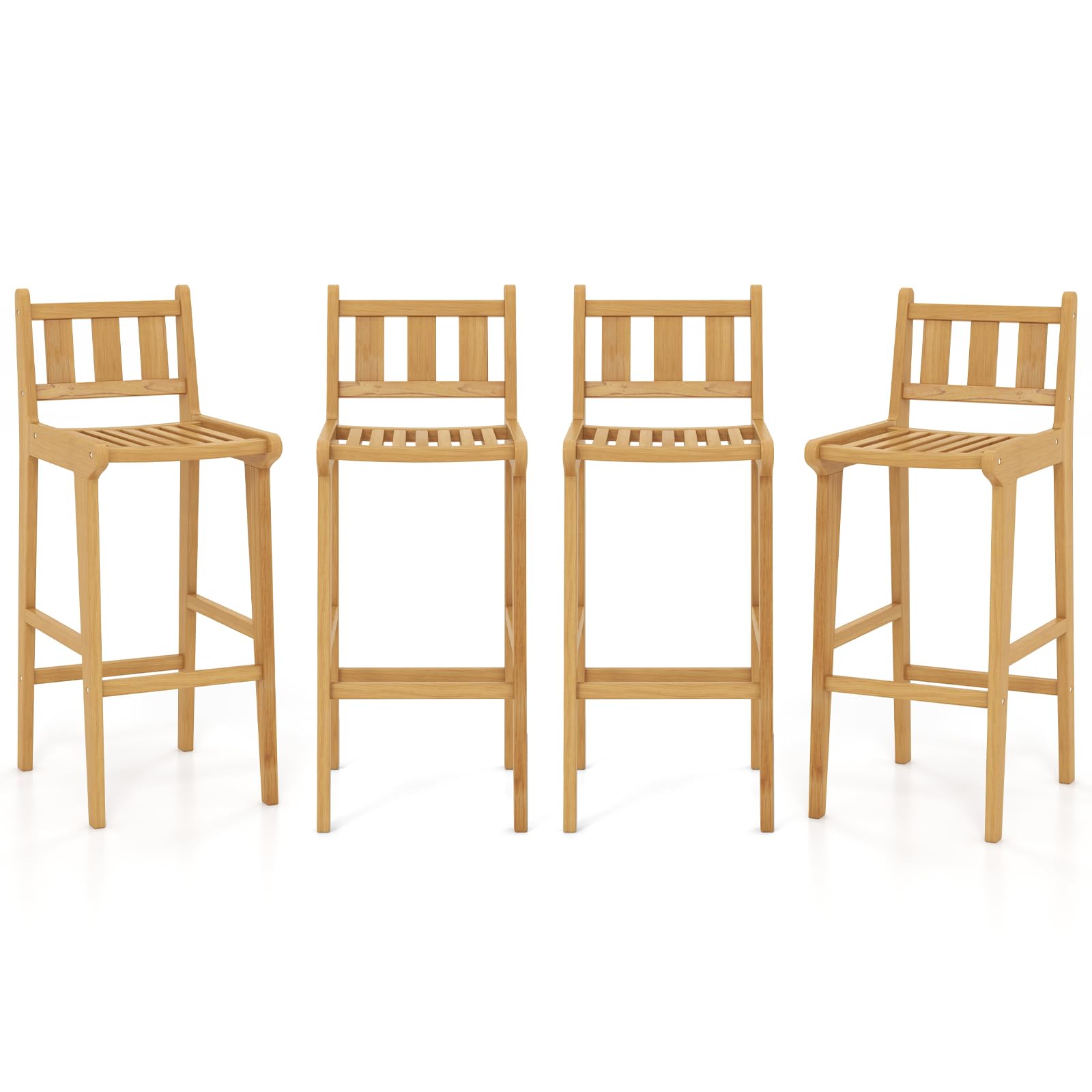 Crafted from sturdy, enduring teak wood, the bar chair is perfect for a long-term use. All for optimal sitting comfort, the bar stool features an ergonomic backrest and a footrest for added comfort and support. With a weight capacity of up to 330lbs, it promises stability. The slatted surface design enhances the patio chair’s aesthetic appeal and promotes airflow. Its versatility allows for use indoors and outdoors, complementing any space with a touch of rustic charm. Ideal for bar tables ranging from 40” to 43”in height, this low-maintenance barstool features a painted surface for easy up keep. To extend the product’s lifespan, please avoid leaving it outdoors in the rain.
