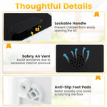 - High Security: The ETL certificated towel heater is fortified with NTC temperature control, thermostat temperature control, and fuses for a triple-layer security shield. Enhanced safety features include a hot surface indicator, a safety vent, and a lockable lid to prevent unauthorized access.