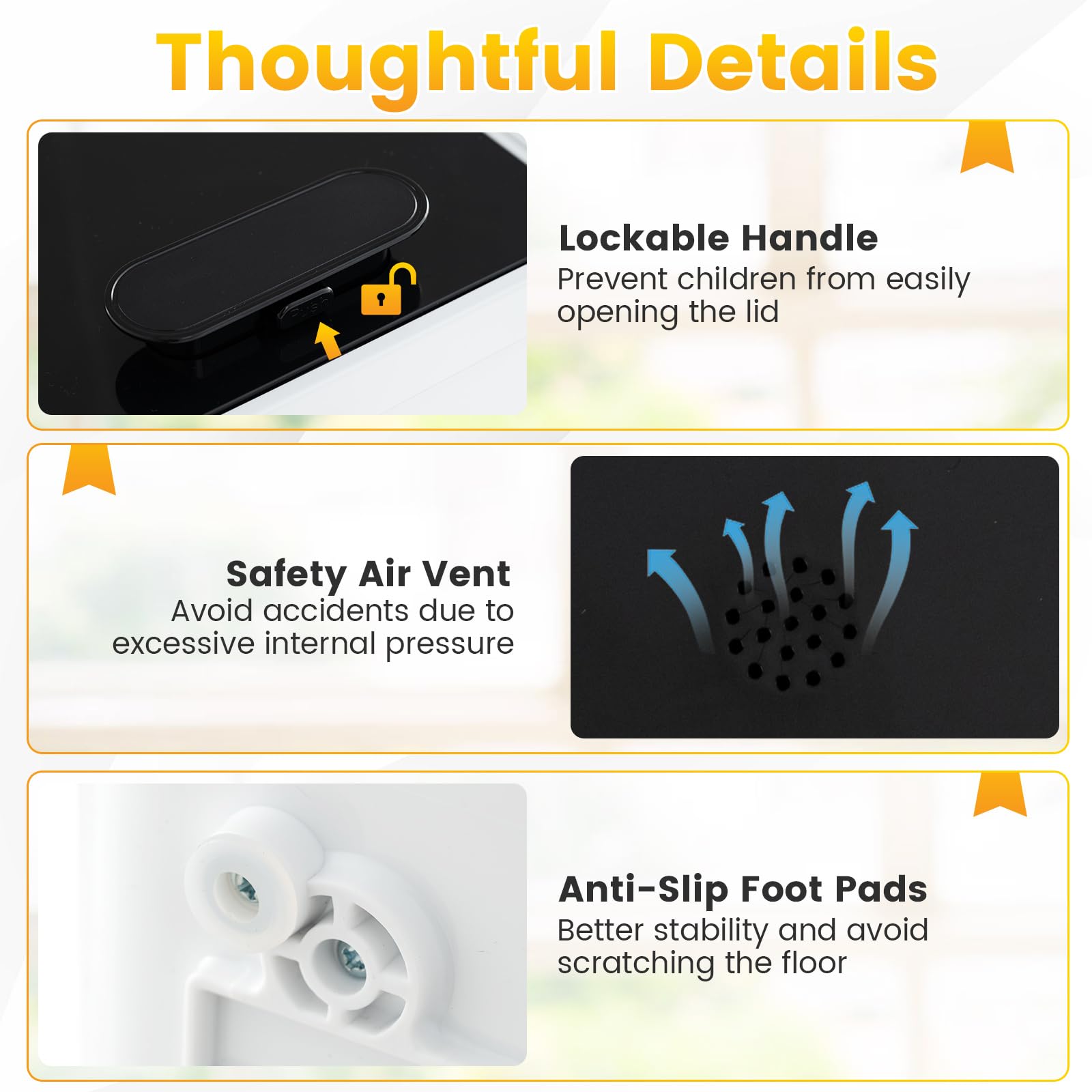 Anti-slip foot pads ensure better stability and avoid scratch the floor