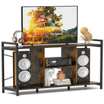 Turn Your Living Room into a Statement Space! Discover the industrial TV stand, where durability meets style! Fit for a 55-inch screen, this stand boasts a roomy tabletop with protective guardrails ensuring everything stays perfectly in place. Dive into the clutter-free life with 2 side compartments and 2 open shelves designed for all your media essentials. Crafted with a rock-solid metal frame and reinforced for extra stability, it includes safety anti-tipping kits for utter peace of mind. Not just strong but strikingly stylish with a rustic wood finish, this TV stand transforms any room into an elegant, inviting space. Elevate your living space and embark on a superior viewing experience today!