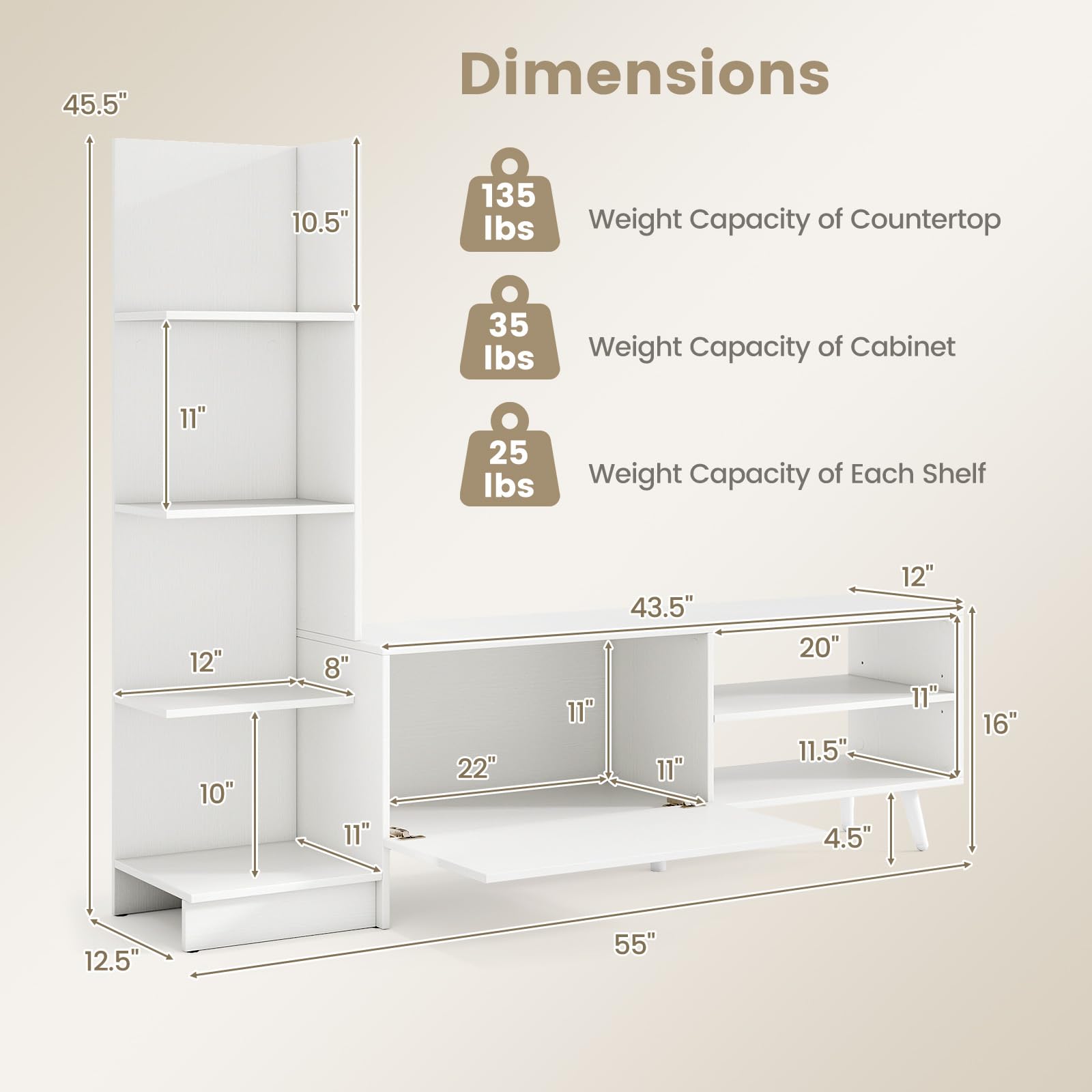 Overall Dimensions: 55” x 12.5” x 45.5”(L x W x H)