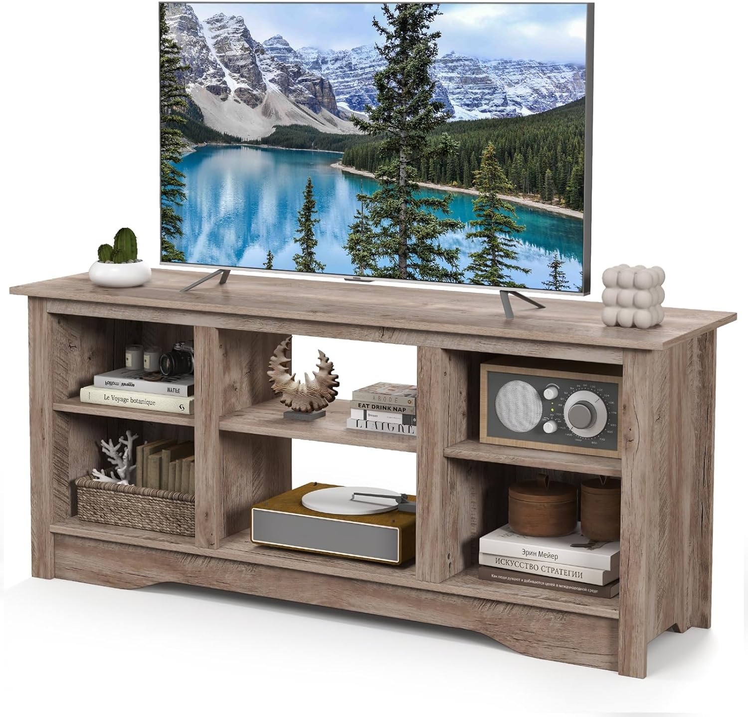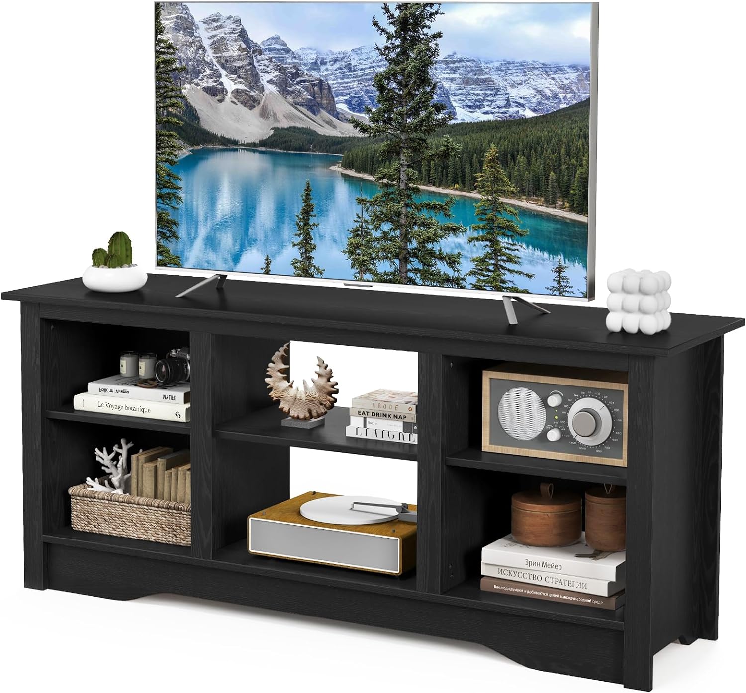 - Large Storage Capacity: The 6-cubby TV stand offers ample storage space for all your media essentials, from gaming consoles to DVD collections. Plus, there are 3 adjustable shelves, each of them can be adjusted to 3 positions for customized use.