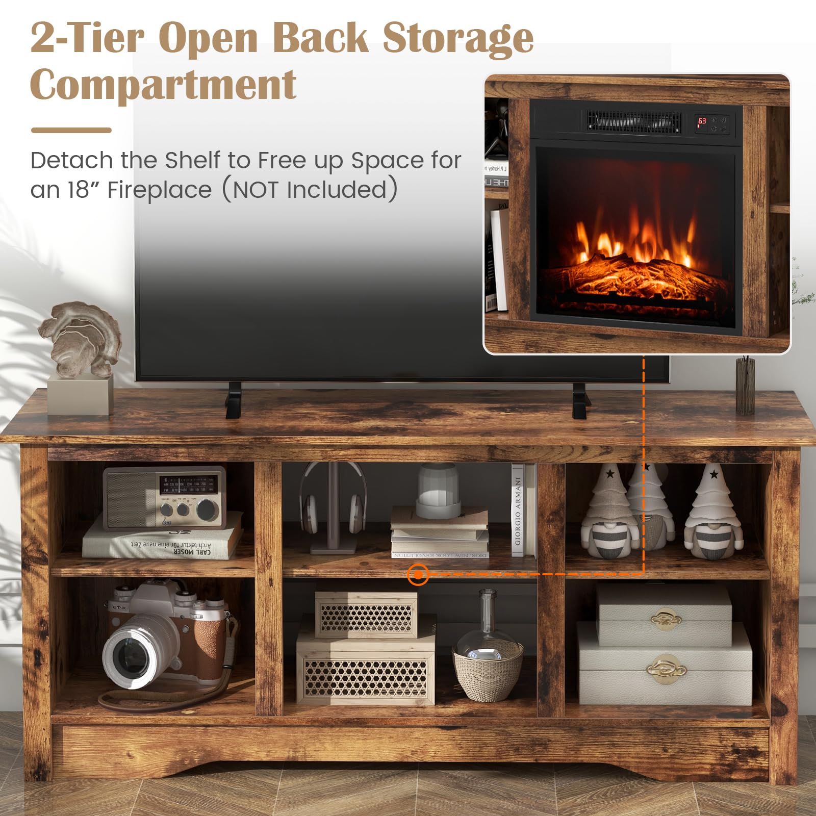 - Open Back Compartment for Fireplace: The 2-tier open back storage compartment of the media cabinet offers versatile options, as you can detach the shelf to free up space for a 18" fireplace (NOT included).