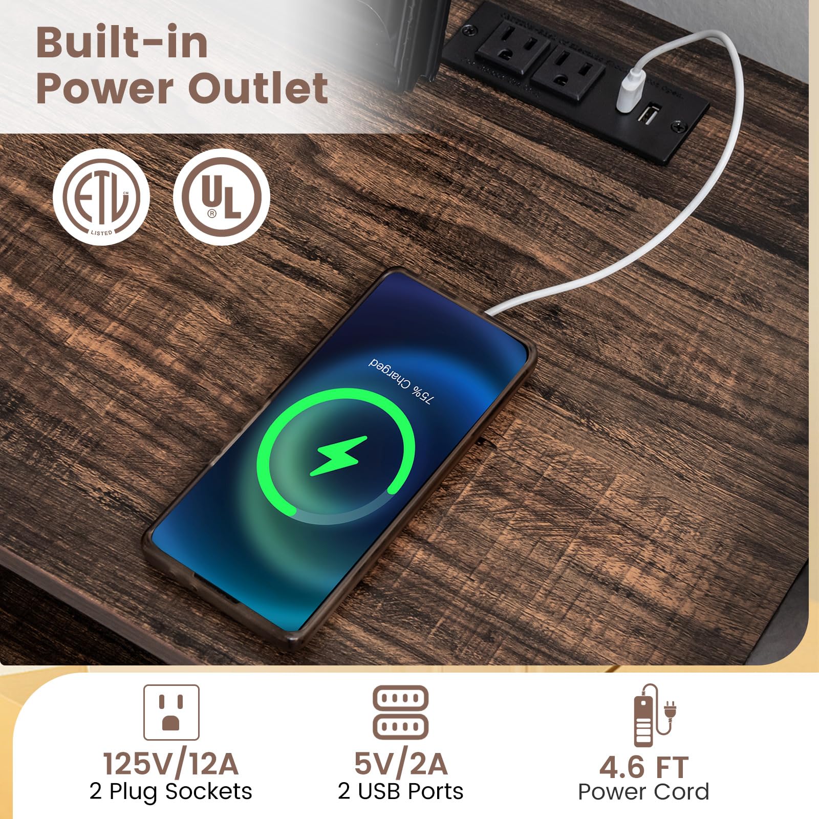 - Convenient Charging Station: Equipped with 2 USB ports (5V/2A) and 2 pug sockets (125V/12A), this TV stand built-in power outlets provides easy access for charging devices like stereo equipment, DVD players, and game consoles. What’s more, the outlets have the ETL certification and the adaptor features the UL certification.