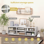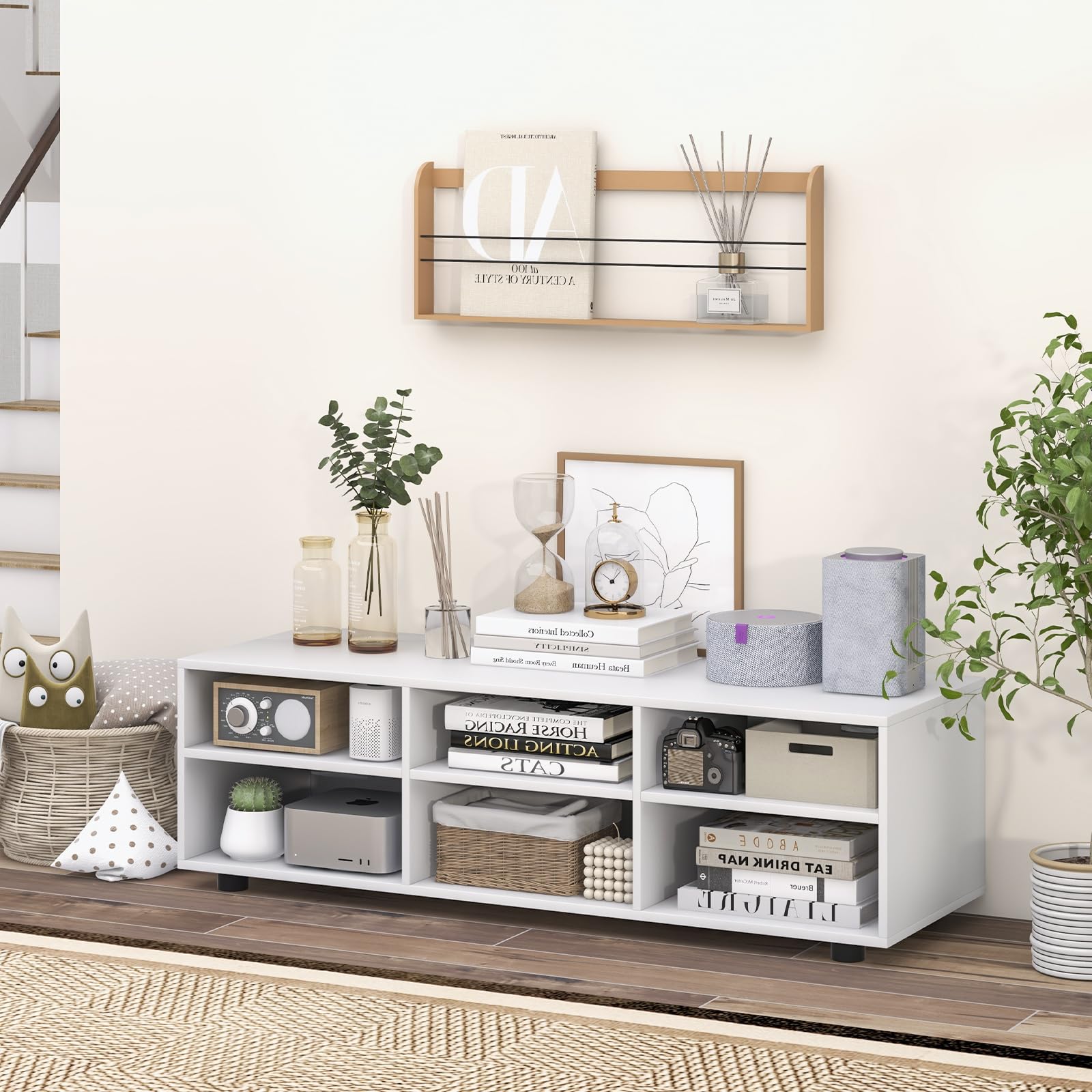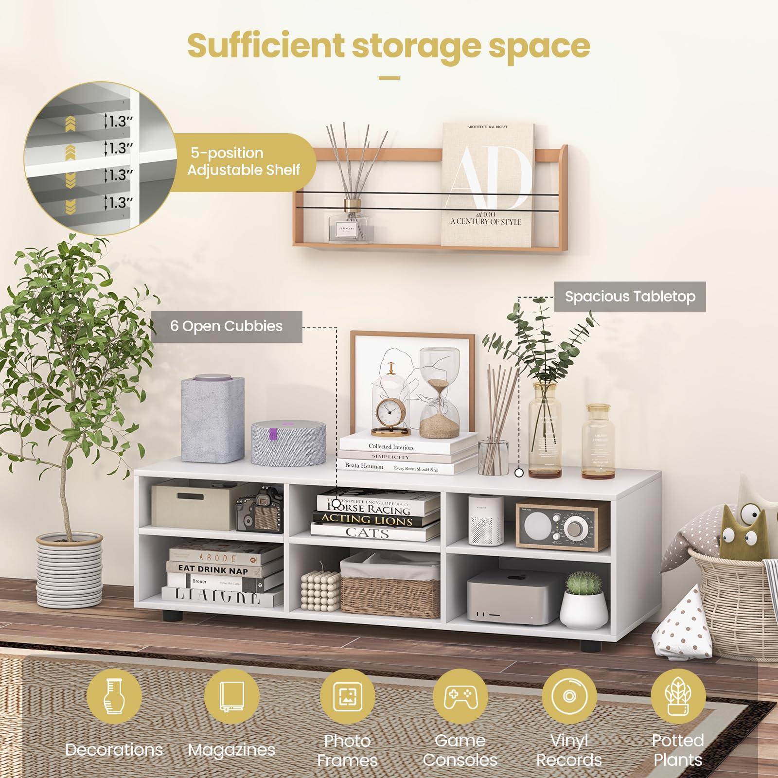 - 🎀[Sufficient Storage Space]: With a 45" x 15.5" (L x W) spacious tabletop, our entertainment center can match up to a 55" TV. The larger screen provides better visual enjoyment. Meanwhile, the TV cabinet has 6 open cubbies. You can store your frequently used decorations, photo frames, game consoles, vinyl records, magazines, potted plants, books or remote controls here.